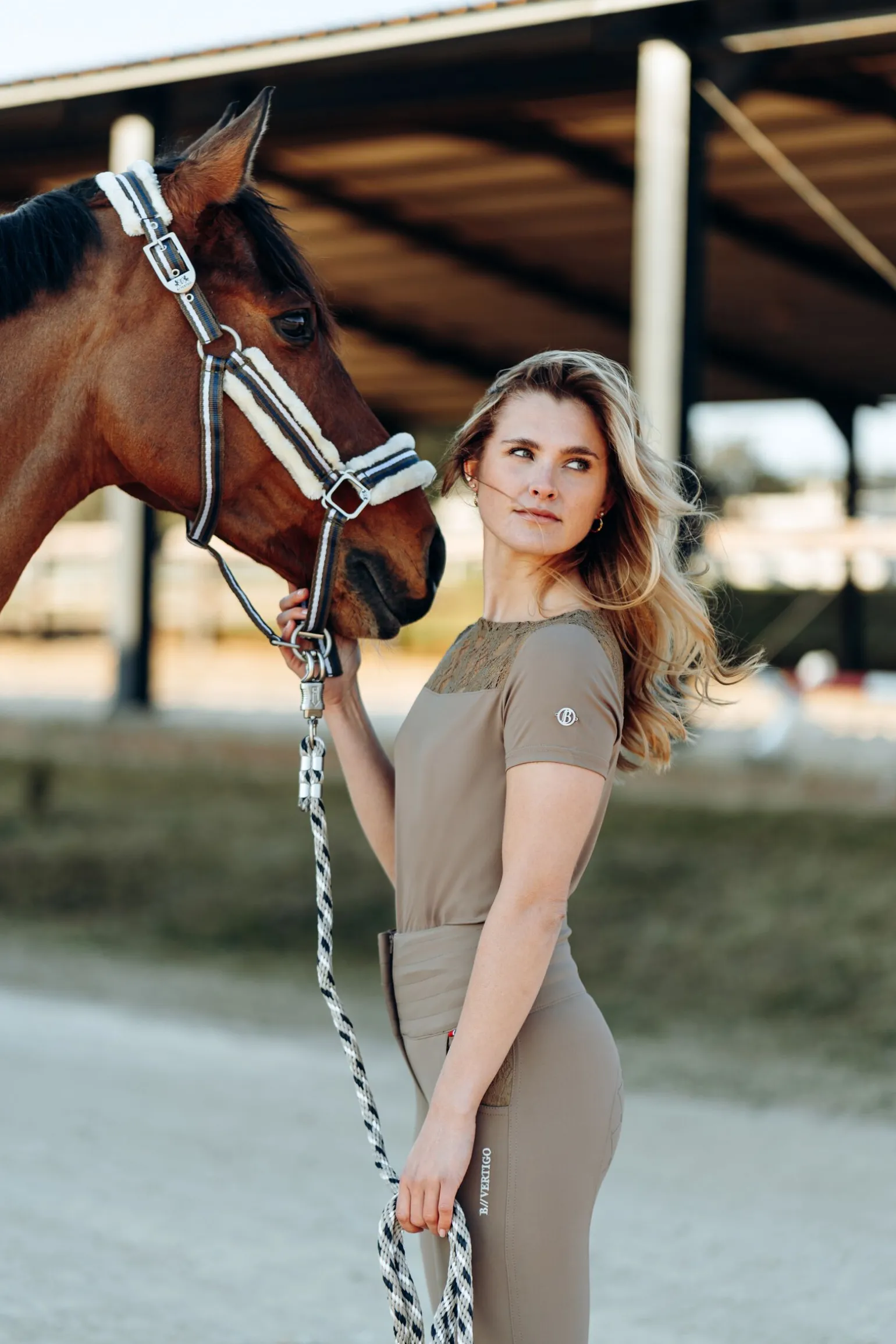 Vår B Vertigo Cameron grime kommer med behagelig innside i fuskepels slik at hesten din holdes komfortabel.Justerbare spenner over nakken sikrer perfekt passform, og klipskrok på kinnet gjør at den lukkes trygt.Det sporty designet og de dempede fargene gjør at det lett matcher utstyret du allerede har, og på den måten kan grimen brukes sesong etter sesong.Bruk den gjerne med vår B Vertigo Cameron leietau (#22644) for et sportslig, luksuriøst utseende!