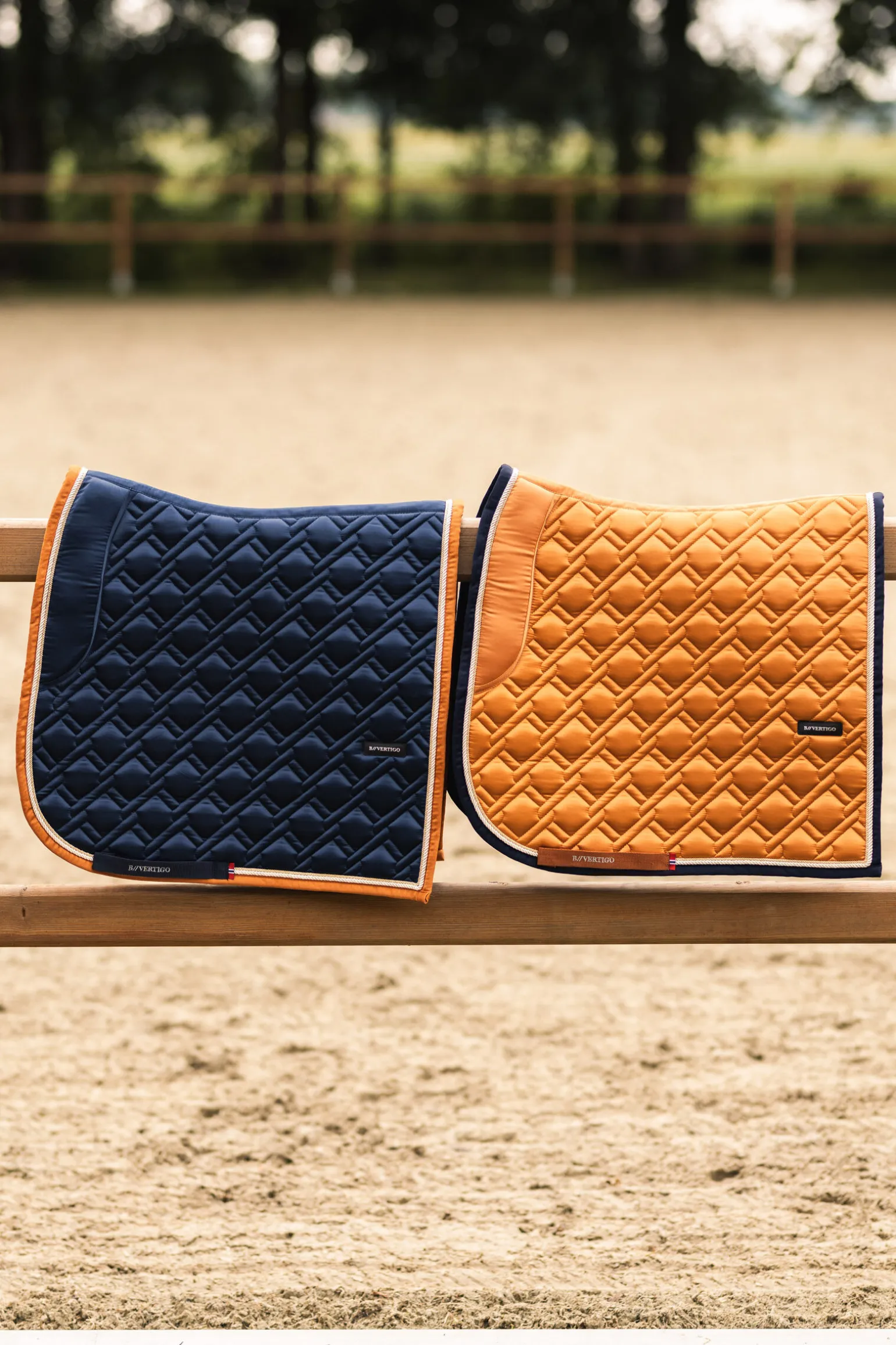 Denne sjabraken har en anatomisk form, noe som sikrer en perfekt passform på hestens rygg. Demping med antiskli hjelper med å holde salen på plass under bevegelse. Den store vatteringen gir et elegant preg. Med kontrastbånd og snorer skiller denne sjabraken seg ut med sitt sofistikerte design. Gjordfestet er dekorert med en brodert logo, noe som gir en diskret merking. En delikat B Vertigo-logo på venstre side viser at denne sjabraken har øye på detaljer. Fremhev din stil med B Vertigo Evolve dressursjabrak.