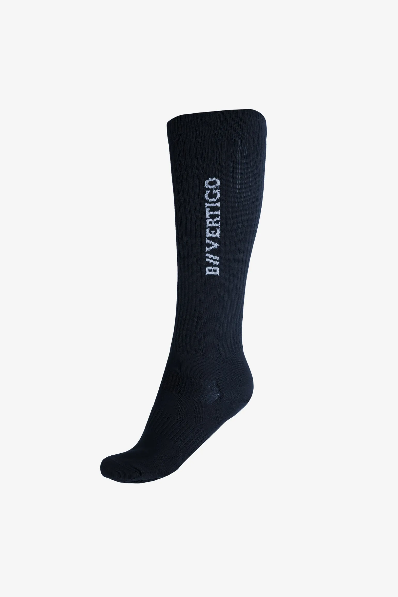 Pustende, knehøye ridesokker med B Vertigo-logo.