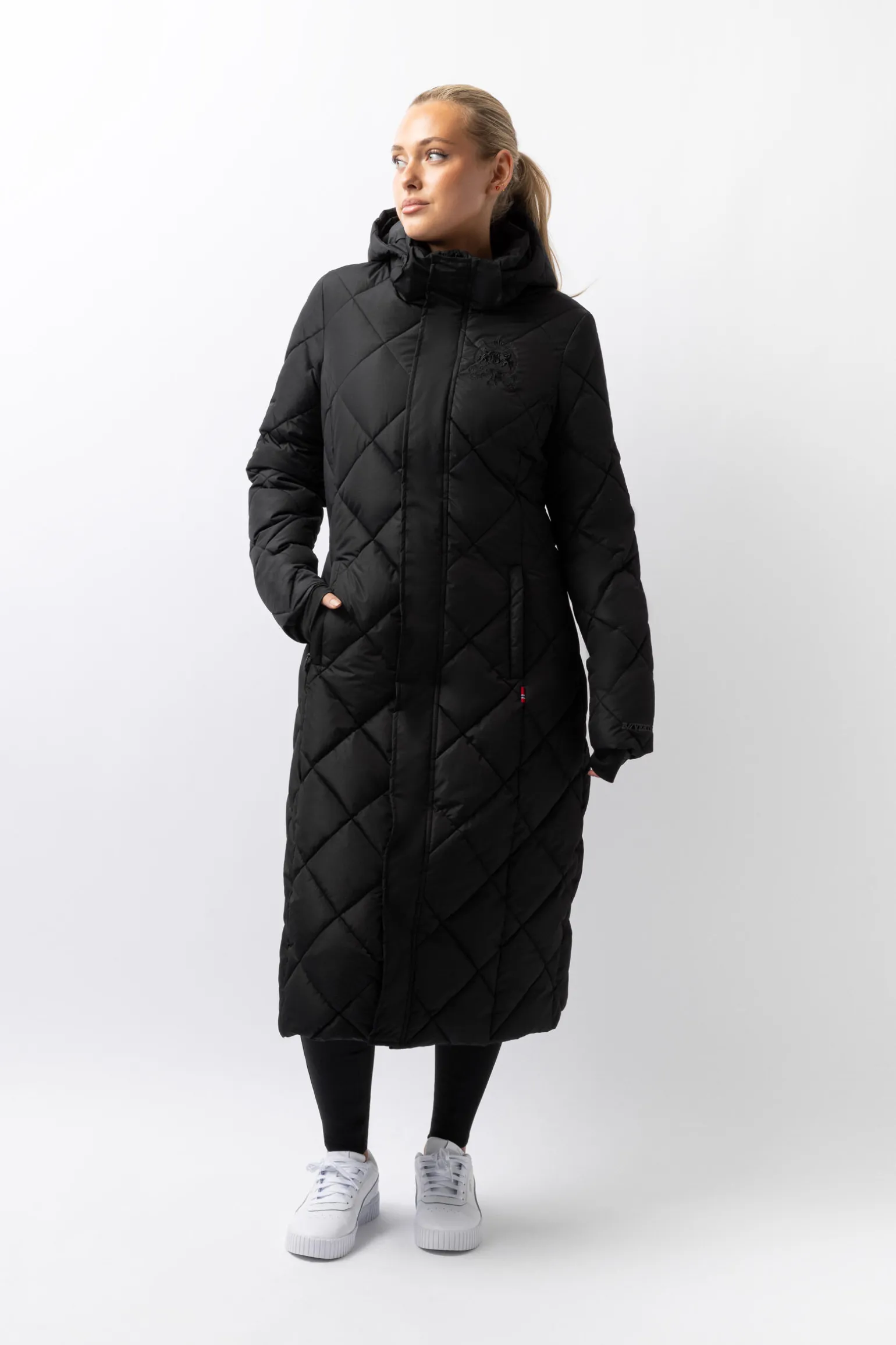 - Elastiske stropper for feste av frakken til beina mens du rir