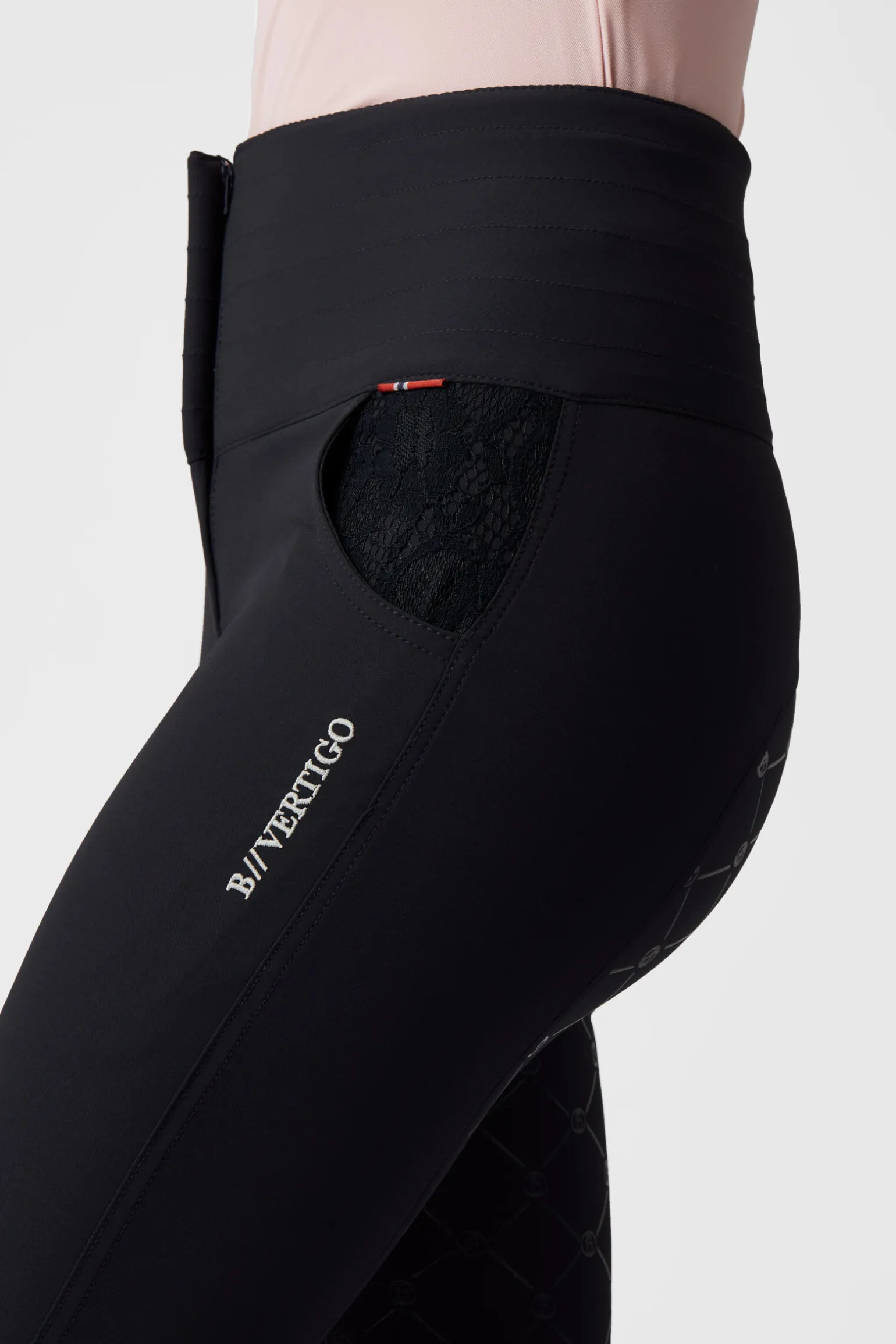 B Vertigo Natalia ridebukser er designet med et høyt liv, med skjult lukking, noe som gjør dem superflatterende og behagelige rundt livet.Det flotte, helforsterkede setet med silikon gir godt grep i salen.Nydelige blondedetaljer i lommene gir et elegant preg på disse ridebuksene.Bruk dem med vår B Vertigo Natalia t-skjorte med blonder (#36720) for et helhetlig utseende.