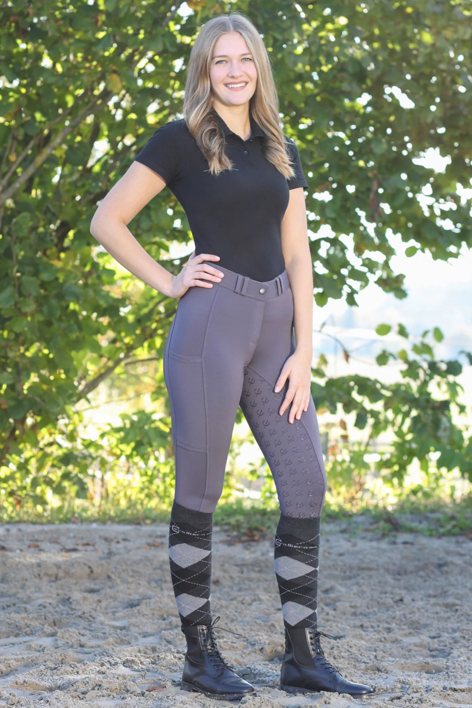Oppdag den perfekte symbiosen av komfort og funksjonalitet for hele året!Covalliero dames Full-Grip ClassicStar ridebukse er laget av en ekstremt elastisk mikrofiber som tilpasser seg alle værforhold. Takket være sin klassiske helårstilpasning vil du oppleve optimal komfort og bevegelsesfrihet gjennom hele året. Ridebuksen tilbyr en perfekt passform med en normal midje som sikrer en trygg passform uten begrensninger. Nyt hver ridetime, uansett vær!I tillegg til det stilige designet imponerer disse ridebuksene med gjennomtenkte funksjoner. En av de mest fremtredende funksjonene er den praktiske telefonlommen, ideell for ryttere som ønsker å være tilgjengelige på farten eller registrere treningsøktene sine. Denne lille, men fine detaljen gjør dames Full-Grip ClassicStar ridebukse til en uunnværlig følgesvenn i stallen og på ridebanen.
