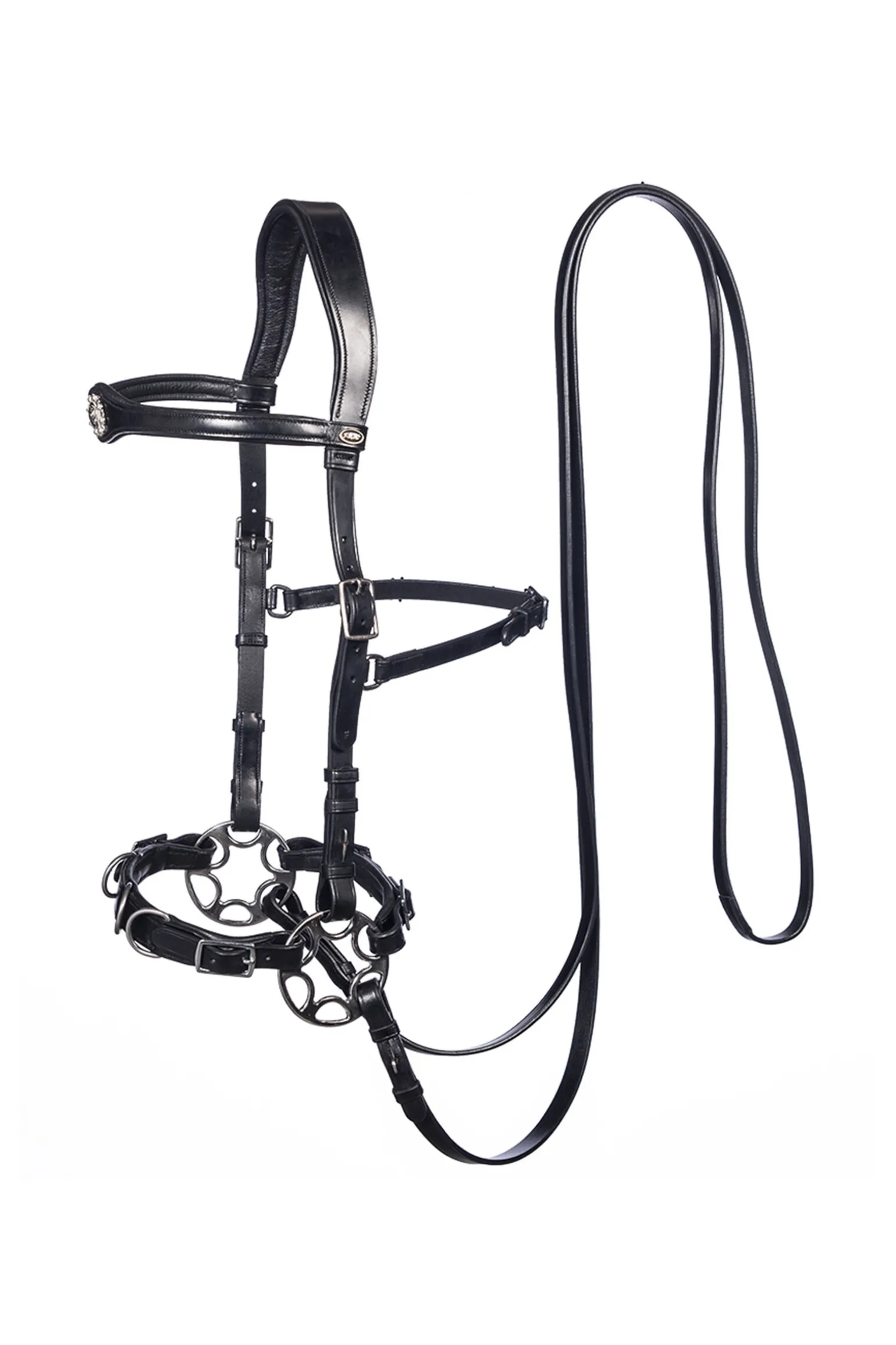 F.R.A. bitless system 2: bitless bridles are not new! For centuries a bitless bridle was taken for granted, before it was ever thought of putting something in the horse’s mouth, people simply put something around it. A rope as a halter was sufficient at the time and that is how the first bitless bridle was created. In combination with the supporting weight, leg and feeling aids, the rider’s hand maintains contact via the reins, not with the mouth, but with the head of the horse. These rein aids are passed on to the nose, neck and/or cheeks. F.R.A.® bitless offers you a range of bitless bridles; sizes from shetty to shire, in various designs and materials from cotton to leather.F.R.A. bitless system 2: Working principle: pressure on nose.General: Horses naturally react reflexively to pressure on their nose, any unspoiled horse will listen to help applied to the nose by pressure.Suitability: With the bridle, it is possible to build a refined, very clear communication. The bridle gives very good discriminating signals and the experienced rider will feel comfortable with this bitless bridle in a relatively short time. In general, the bridle offers good possibilities for use with sensitive horses and in particular when breaking in young horses.