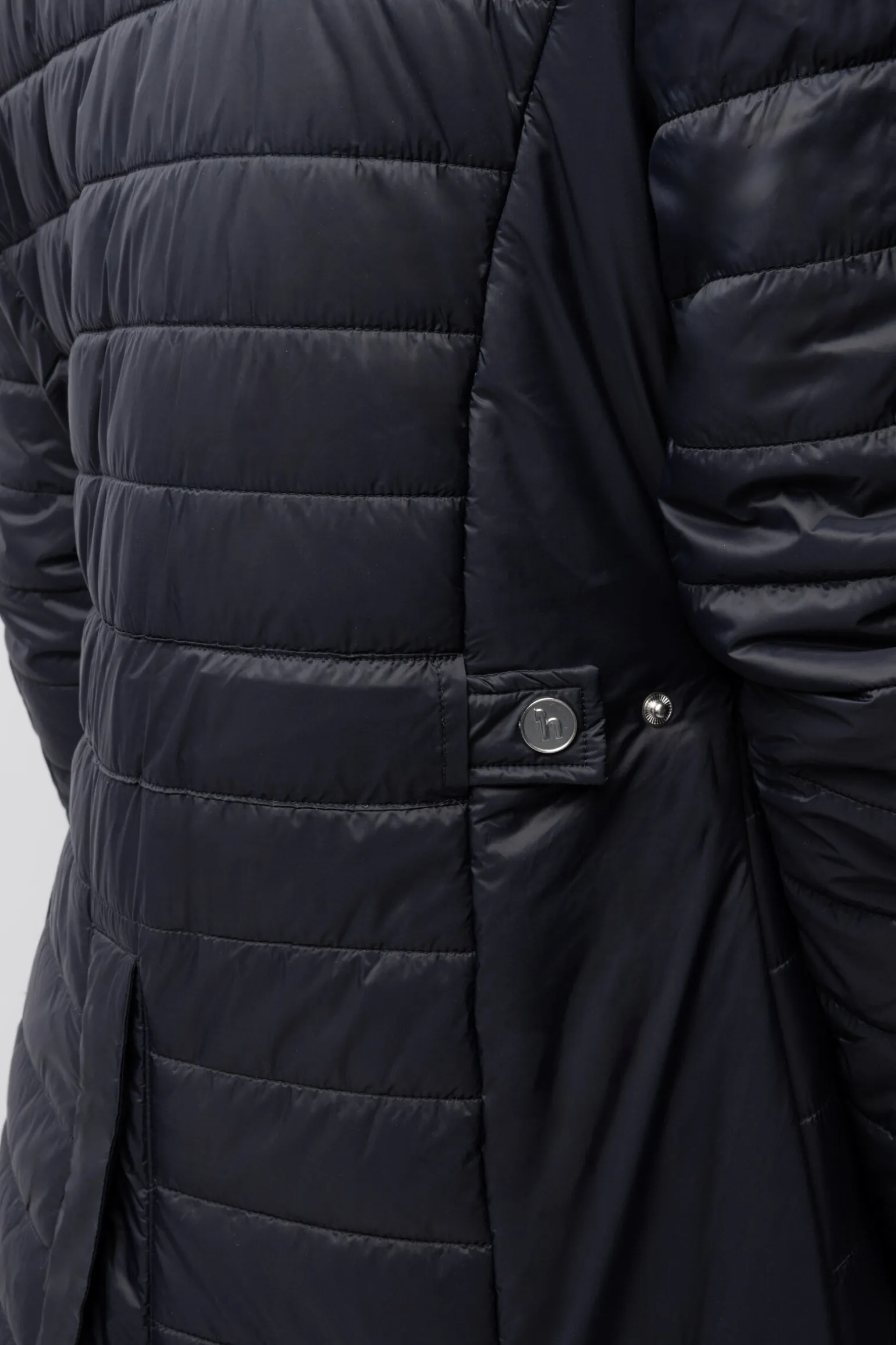 - Åpning til nedre del bak, med magnetisk lukking. Elastiske stropper på innsiden av jakken holder den på plass