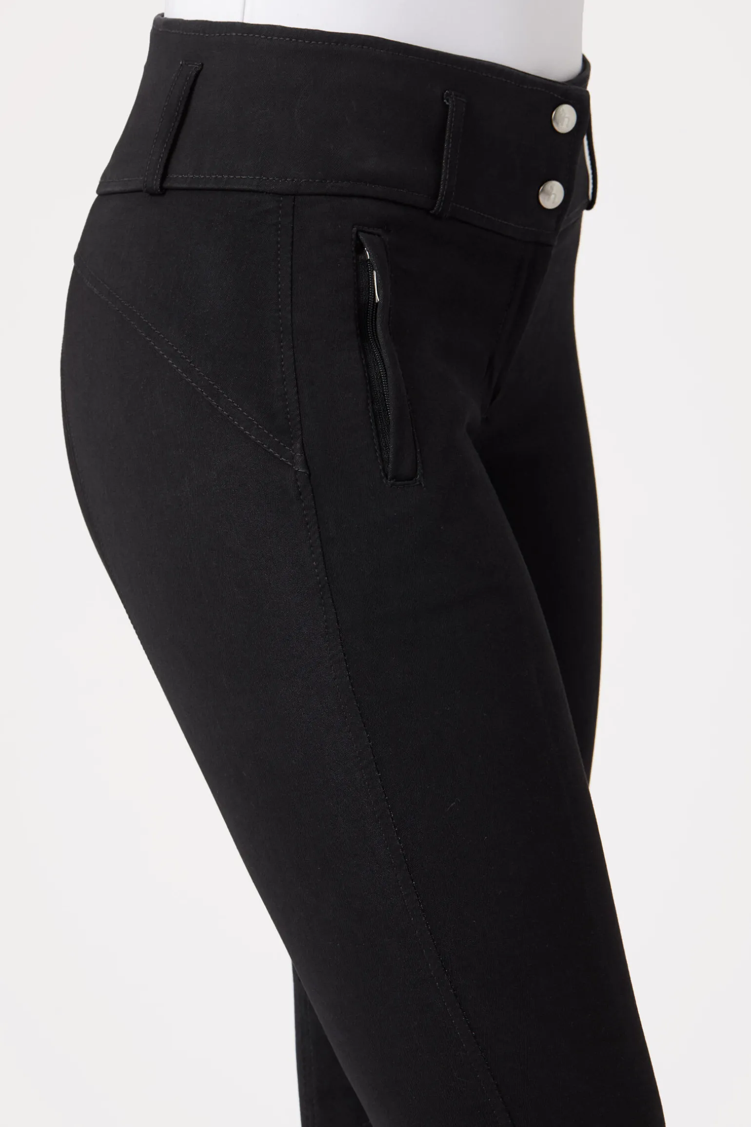 Vår populære Daniella ridebukser er nå tilgjengelig i en kneforsterket versjon, med lær! Det høye livet på disse ridebuksene er komfortabelt og støttende, og noe høyere bak. Det myke stoffet har akkurat nok stretch, og doble knapper foran samt beltehemper gir en god passform.