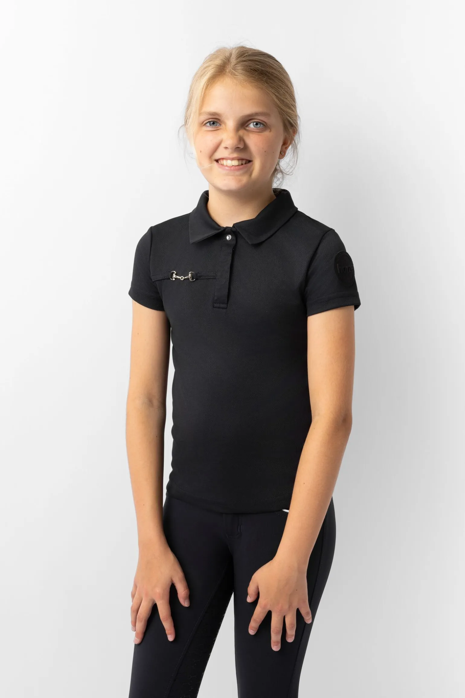 Horze Denise funksjonell pique-skjorte er et funksjonelt plagg laget av pustende stoff.De hurtigtørkende kvalitetene gjør denne skjorten perfekt for hverdagstrening.De livlige fargene vil lyse opp barnets garderobe.Metalldetaljene på brystet gir en diskret helhet på plagget.