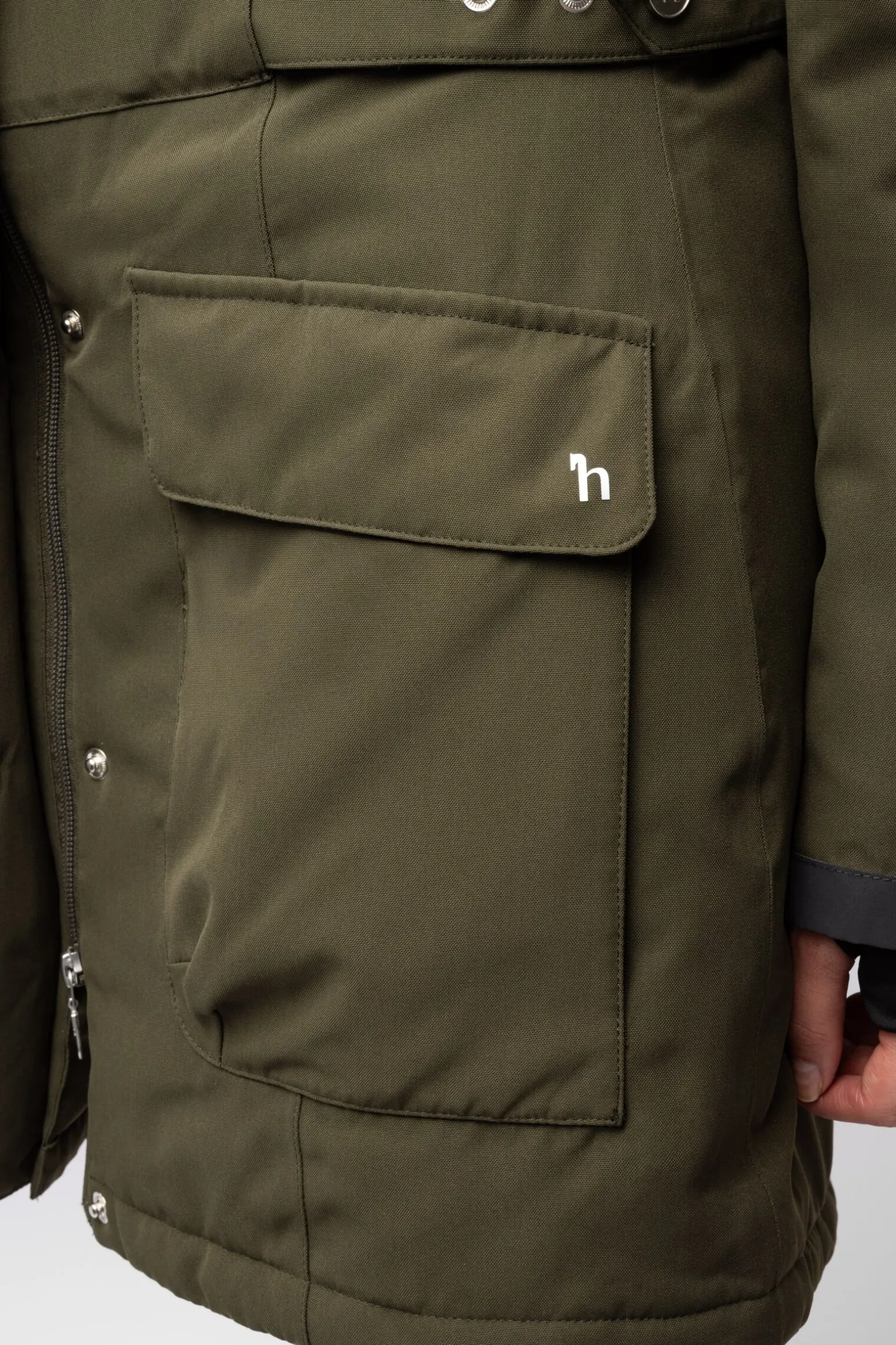 Hovedstoff, fôr og innside: 100% polyester. Vannsøyle 3000mm/pusteegenskaper 3000mvp. Hovedsømmene er sveiset.