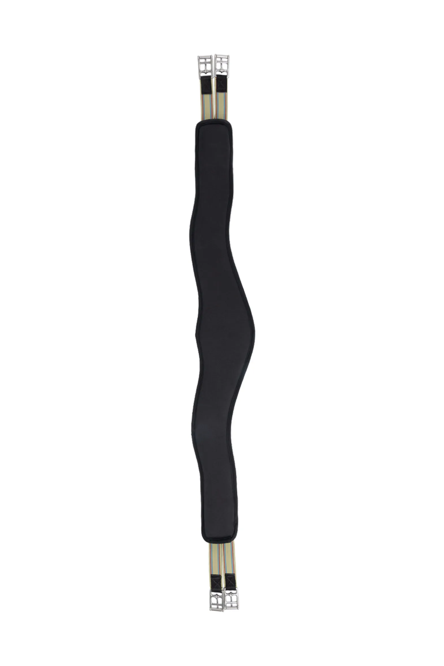 Ideal for horses with a forward girth groove, the shaped design of the Horze Wentworth long girth can help prevent the saddle from slipping forward. With internal memory foam padding and double elasticated buckle straps, the Wentworth girth is shaped for an excellent fit and offers superb comfort and freedom of movement for your horse. The internal webbing strapping reinforces for extra strength while the PU reinforcement patches offer extra protection and a durable, low maintenance design. Finishing off this super girth is the addition of 3 stainless steel D rings which allow for the easy attachment of training aids.