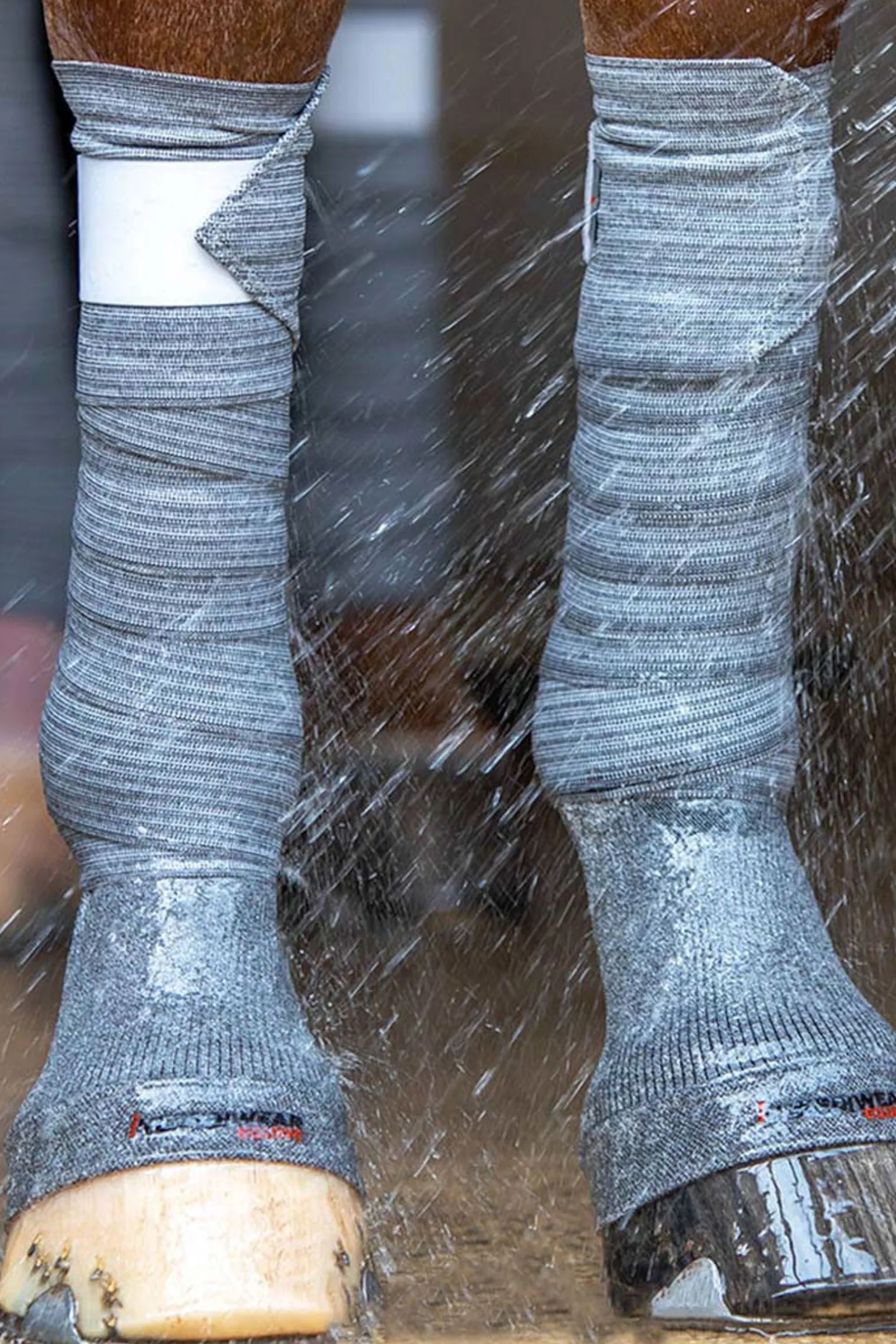 Den spesielle Incrediwear Equine-teknologien er basert på halvlederne germanium og karbon, noe som er spesielt vevd inn i stoffet.Stimulering av kroppsvarme frigjør negativt ladede ioner, som igjen stimulerer cellevibrasjon og dermed øker blodstrømmen: På den måten tilføres vevet betydelig mer oksygen og næringsstoffer.For restitusjon og en helingsprosess trenger hestens kropp mer næringsstoffer i det berørte vevet for å gjenopprette normal balanse.Dette gjelder i begge faser etter intensivt stress som følge av trening eller stevne, samt i tilfeller ved akutt skade, betennelse og lignende.Incrediwear Equine-produktene starter å fungere med en gang de får kontakt med hestens kropp, og er derfor ekstremt fleksible i behandling av skader eller som et rent velværeprodukt.Med Incrediwear blir det ikke kompresjon eller ekstra varmeutvikling, slik at produktene også kan brukes mot betennelser og på ulike skader.En spesiell fordel med Incrediwear Equine bandasjene: Når de er våte ligner de på en ispakke.Det dype bindevevet kjøles ned, mens kroppsvarmen transporteres vekk av overflaten på huden og bandasjene.Du trenger ikke kjølepakker og effekten kan gjøres så ofte du ønsker.