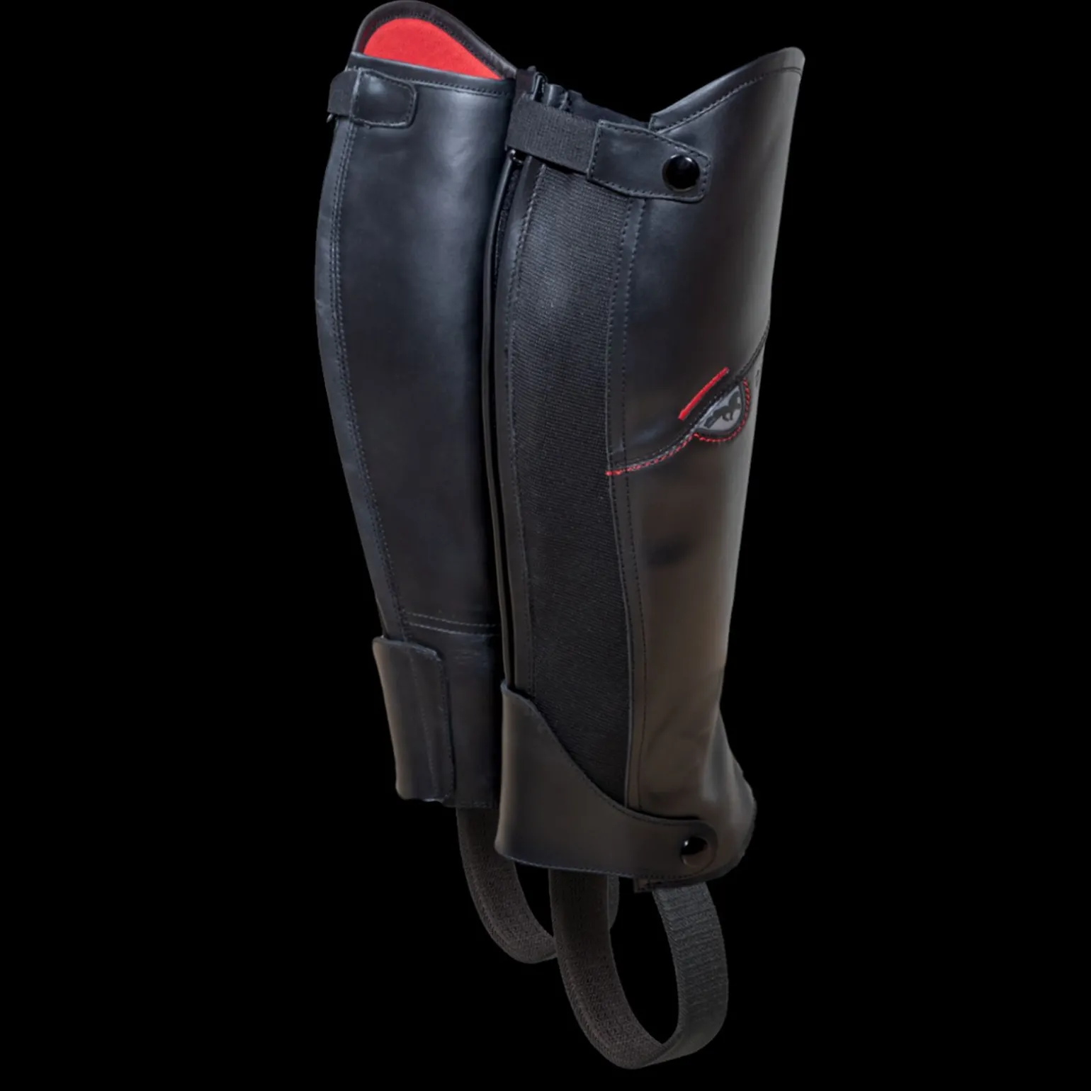 Mini chaps with a great fit, due to the high quality leather and added elastic zone. Elastic foot strap helps ensure it stays correctly attached to the boot, and is comfortable to wear. Zipper and snap buttons closing on the rear.