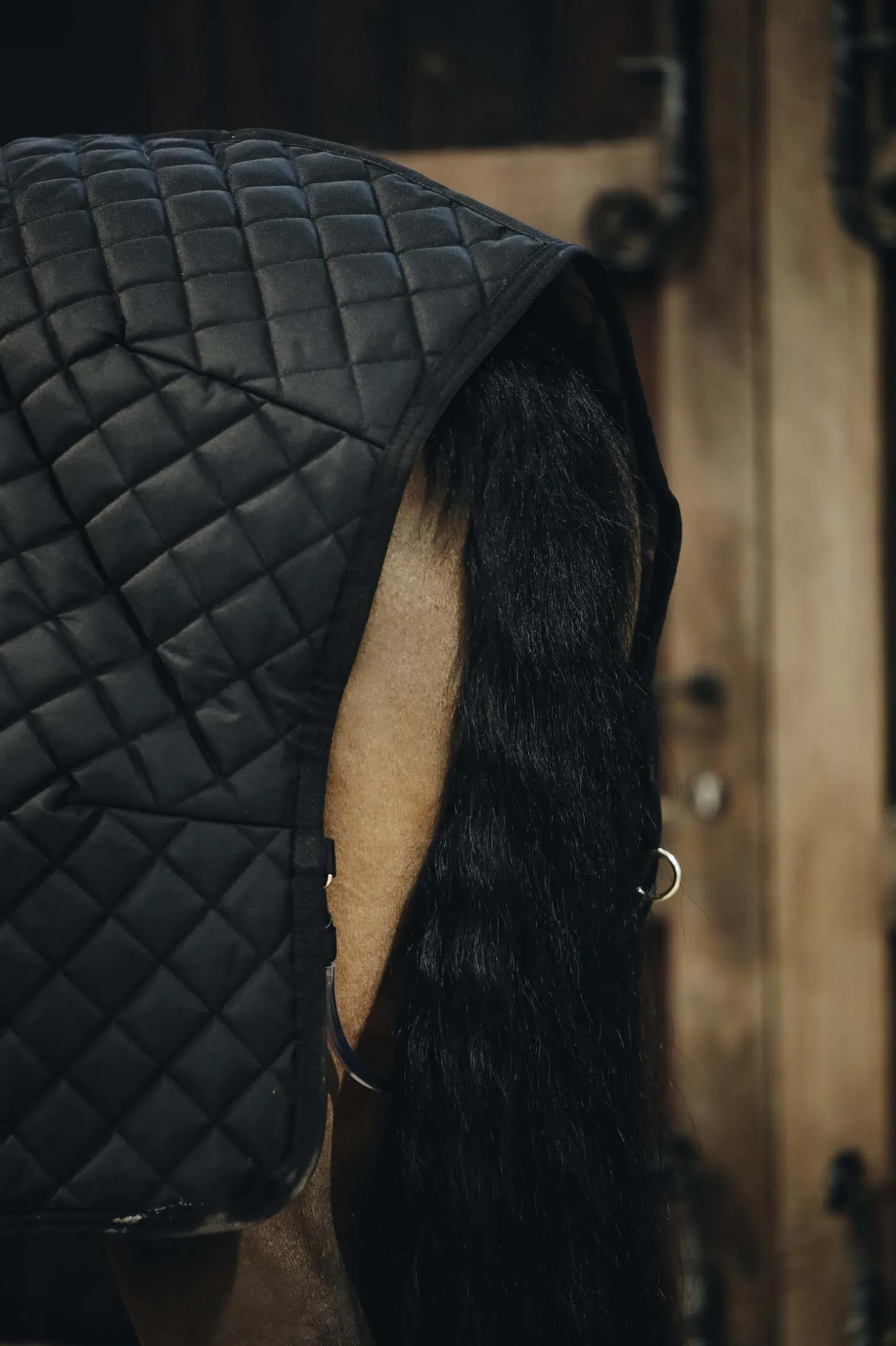 Vårt stalldekken med 400 gram fyll har en kant av kunstig kaninskinn, noe som gir en ekstremt myk følelse, og forhindrer gnag og at hår fester seg i kanten.Takket være de myke hårene av kunstig kaninskinn på kanten får hesten en mer skinnende pels.Det kunstige kaninskinnet lager ørsmå luftlommer som fanger og bevarer kroppsvarmen.Takket være det høye forholdet mellom varme og vekt vil stalldekkenet gi utmerket komfort.Det kunstige saueskinnet beskytter manken.Det utvendige stoffet med diamantvattering gjør det mye mer vanskelig for hesten å bite i stoffet og rive det i stykker.Det forhindrer også flis fra å feste seg på dekkenet.Stalldekkenet kommer med dobbel frontlukking og to kryssgjorder som er forsterket med kunstig lær.Halesnoren er avtakbar og er dekket av plast for enkel rengjøring.Dekkenet kan maskinvaskes på 30°. Skal ikke tørketromles.