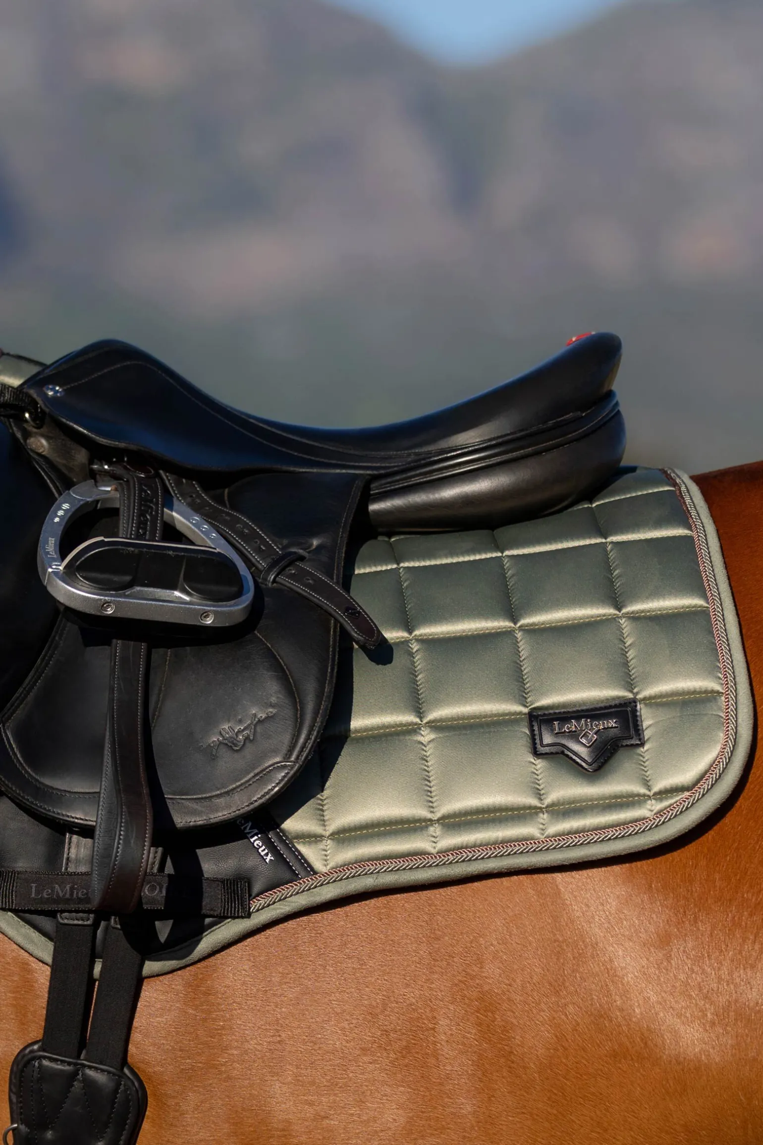 - På gjordområdet er det teksturert PU-lær som er komplimentert med en logo, og har den velkjente LeMieux-signaturen med lav gjordfeste med innvendig løkke til gjordstroppen