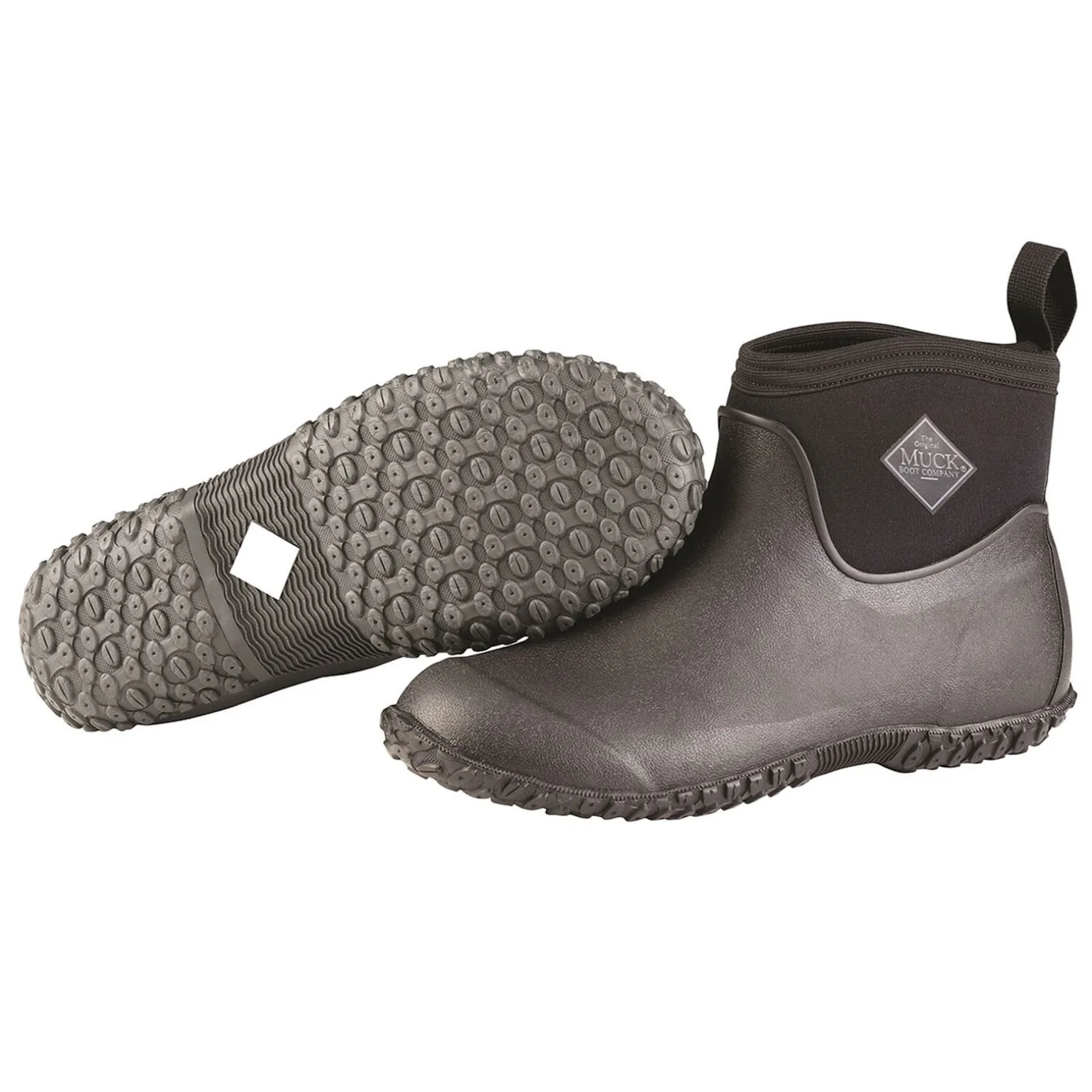 Muckster er en populær, lav støvel som er fin å bruke når du jobber rundt dyr. Den komfortable, tøyelige og tettsittende kanten på toppen gjør at møkk, støv, småstein og regn ikke kommer inn i støvelen, noe som også gjør den fin til hagearbeid. Med 5mm CR Flex-skum, pustende nettingfôr og praktiske trekk-på stropper føles Muckster akkurat som en joggesko, bare at den er 100% vanntett. Yttersålen har diamantmønster rundt hele skoen, noe som gir god beskyttelse og godt grep – og gjør at skitt, gjørme og steiner faller av mens du går.