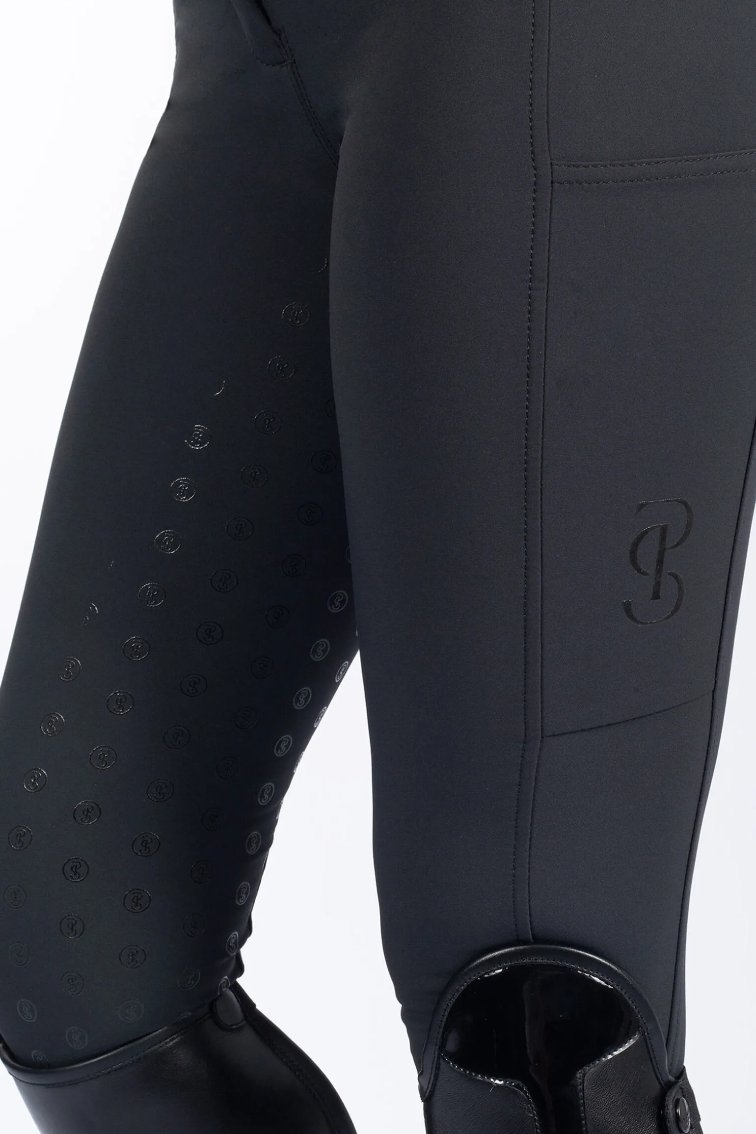 Ridebukser med høyt midje og fullt grep.Laget av fireveis stretchmateriale som gir en figurnær passform og optimal bevegelighet.Tonale elastiske sokker ved benåpningen skaper kompresjon og sørger for at ridebuksene passer langs benet.Telefonlommer på begge sider av bena.