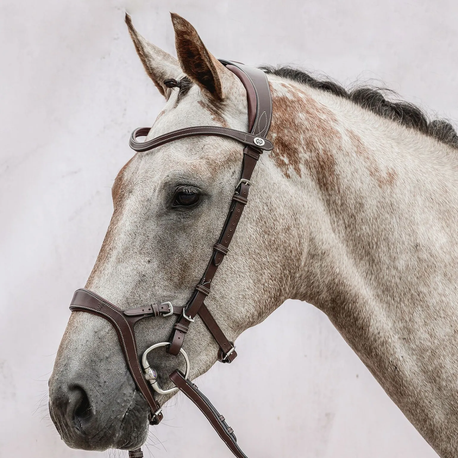 Den justerbare nesereima gir rytteren muligheten til å velge hvor mye trykk man ønsker å påføre nesa.Den hjelper hesten med å akseptere bittet, og er det perfekte hodelaget for både den unge hesten som fortsatt lærer å kommunisere med rytteren, samt for de hestene som forsøker å unngå kontakt med rytterens hånd og heller krøller seg bak loddplan.Hodelaget er også passende for hesten som er svært framover, siden det hjelper rytteren med å regulere hestens fart uten å sette i et skarpt bitt i munnen, eller at hånden blir for sterk.Nirak™å tennene, noe som reduserer muligheten for bittrelaterte skader.Nakkestykket er anatomisk formet for å fjerne trykkpunkter på det sensitive nakkeområdet, og luftkanalen over hestens nakke gjør dette ekstra effektivt.Det kommer med ekstra polstring rundt ørene for økt komfort for hesten.Kinnstykkene er flate med normale spenner, og de patentsøkte Cradles™ør at bittet henger i hestens munn, og lager en naturlig elastisitet. Dette fører igjen til mindre trykk på nakken.De spesielle vuggene er avtakbare og konstruert så de lett kan klipses av og på.Kinnstykkene er justerbare på begge sider slik at hodelaget kan tilpasses hver individuelle hest helt perfekt, og tillater også ulike størrelser på bittringene.Alle smygstolene har gummi på innsiden slik at de holdes på plass, selv under de tøffeste utfordringene.Pannebåndet har det unike patentsøkte Click-it™ør at du kan skifte pannebånd på noen få sekunder, selv om hesten har på seg hodelaget.