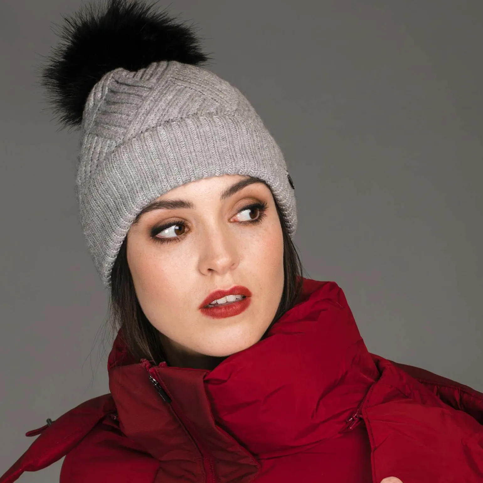 Luksuriøs kashmir/ullfibre.Fleecefôret lue i ull.Avtakbar dusk i fuskepels.