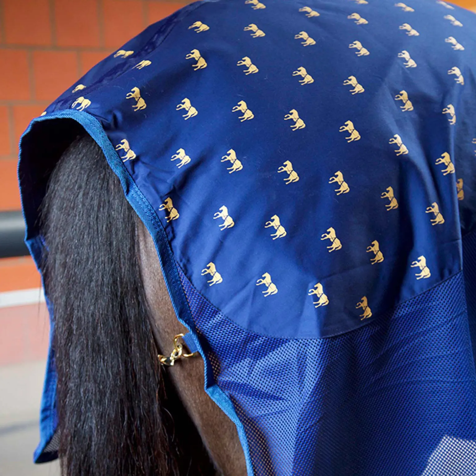 Enten om du er hesteeier, trener, profesjonell eller hobbyrytter er det en ting vi alle har til felles.Vi vil gi hesten vår best mulig pleie.Fordi en hest i harmoni trives bedre og yter bedre.2.RyggområdetRyggen er en av hestens mest eksponerte muskelgrupper.Å plassere akupressur-matter på ryggen stimulerer muskulaturen og bindevev som omkranser det, og hjelper hesten med å slappe av og restituere.Du kan bruke akupressur-mattene på skulderen og på ryggen.3.Lend og bakpartHestens viktige meridianer påvirkes av akupressur-punktene i lend og bakpart.Den største av de tre akupressur-mattene brukes her, med hoveddelen av dekkenets totalt 11.000 akupressur-punkter.Size: S (110-125), M (130-145), L (155)Farge: blåMaterialer: Dekken i polybomull, akupressur-matter i miljøvennlig TPEDekken: Accuhorsemat Cooler kommer med ett dekken, to mindre akupressur-matter for skulder og rygg, en større akupressurmatte for lend og bakpart, samt en bag for transport.La hesten nye godene av akupressur, en eldgammel tradisjon for avslapping, restitusjon og smertelindring.Akupressur ligner akupunktur, men istedenfor nåler bruker akupressur trykk for å påvirke akupunkturpunktene og meridianer.Du kan omtrent se effekten av akupressur, da hesten tilsynelatende vil slappe av for trykket fraAkupunktur-rosene.Det øker blodstrømmen, spenner av muskler og frigjør fordelaktige endorfiner.Modellen «Accuhorsemat Cooler» er et 2-i-1 dekken som er perfekt for varmere temperaturer og sommeren, da det lette materialet i mesh-dekkenet er svært pustende.Uten akupressur-matten er Accuhorsemat Cooler et komfortabelt svettedekken.Perfekt etter en treningsøkt, på stevne, eller på transport.Frontlukkingen gir mulighet for individuell justering.Akupressurdekkenet har tre borrelåsfester for akupressur-matter:1.SkulderområdetAkupressur-matter på skuldrene stimulerer mange av hestens meridianer, inkludert muskulaturen i framparten.Mattene kan fjernes for å passe den individuelle hest.