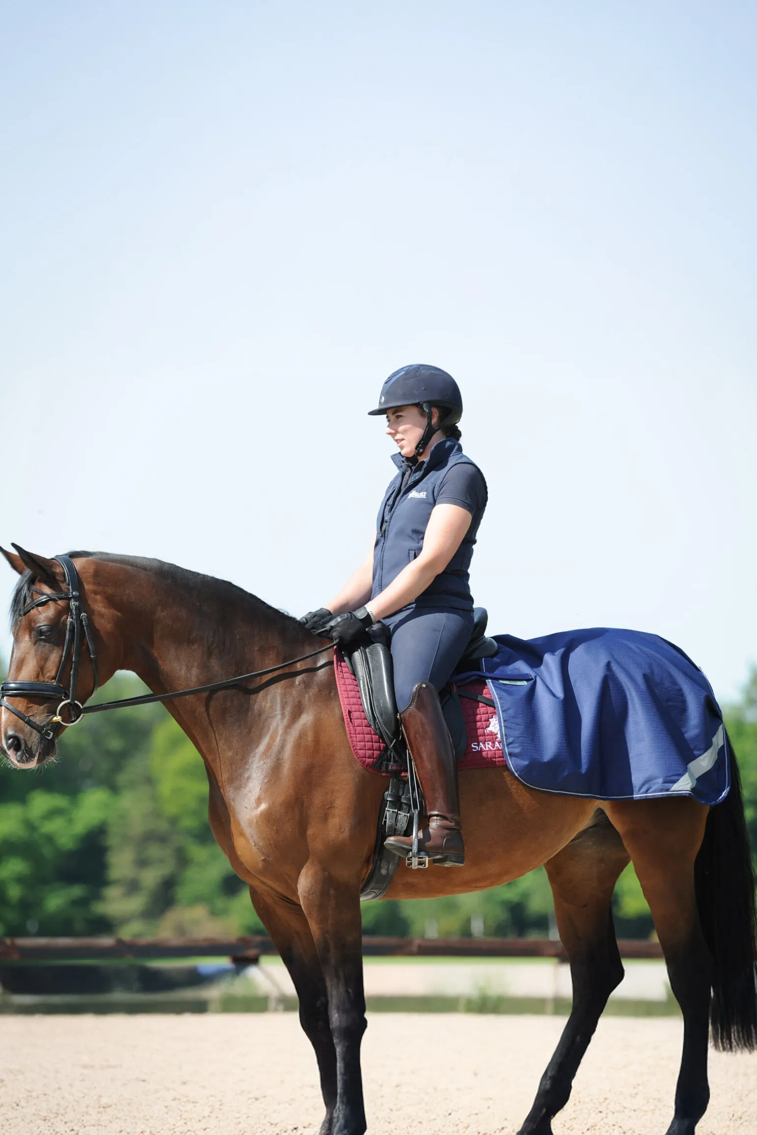 Dette lendedekkenet er det ideelle allværstreningsdekkenet som passer perfekt over ryggen og bak salen. Det holder hesten din varm og tørr under trening, og det er vanntett og pustende med ripstop ytterstoff og reflekterende kanting og striper. Med sin lette og slitesterke design er det en perfekt følgesvenn ute på beitet. Stay-dry og antibakterielt fleecefôr holder dekkenet friskt og fjerner fuktighet. Det kan enkelt festes med borrelåsstropper, enten til stigbøylereimene eller salens gjordfester.