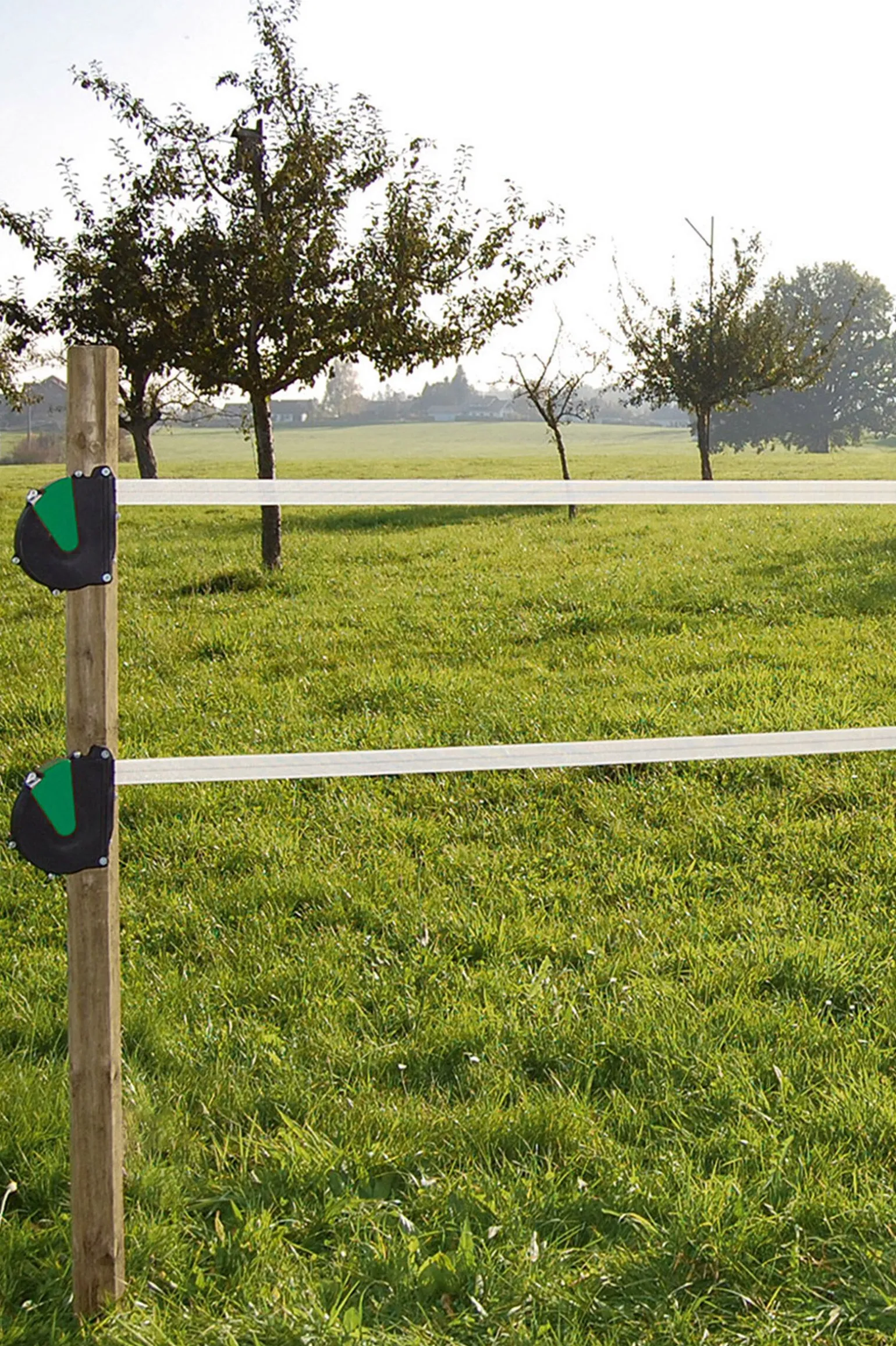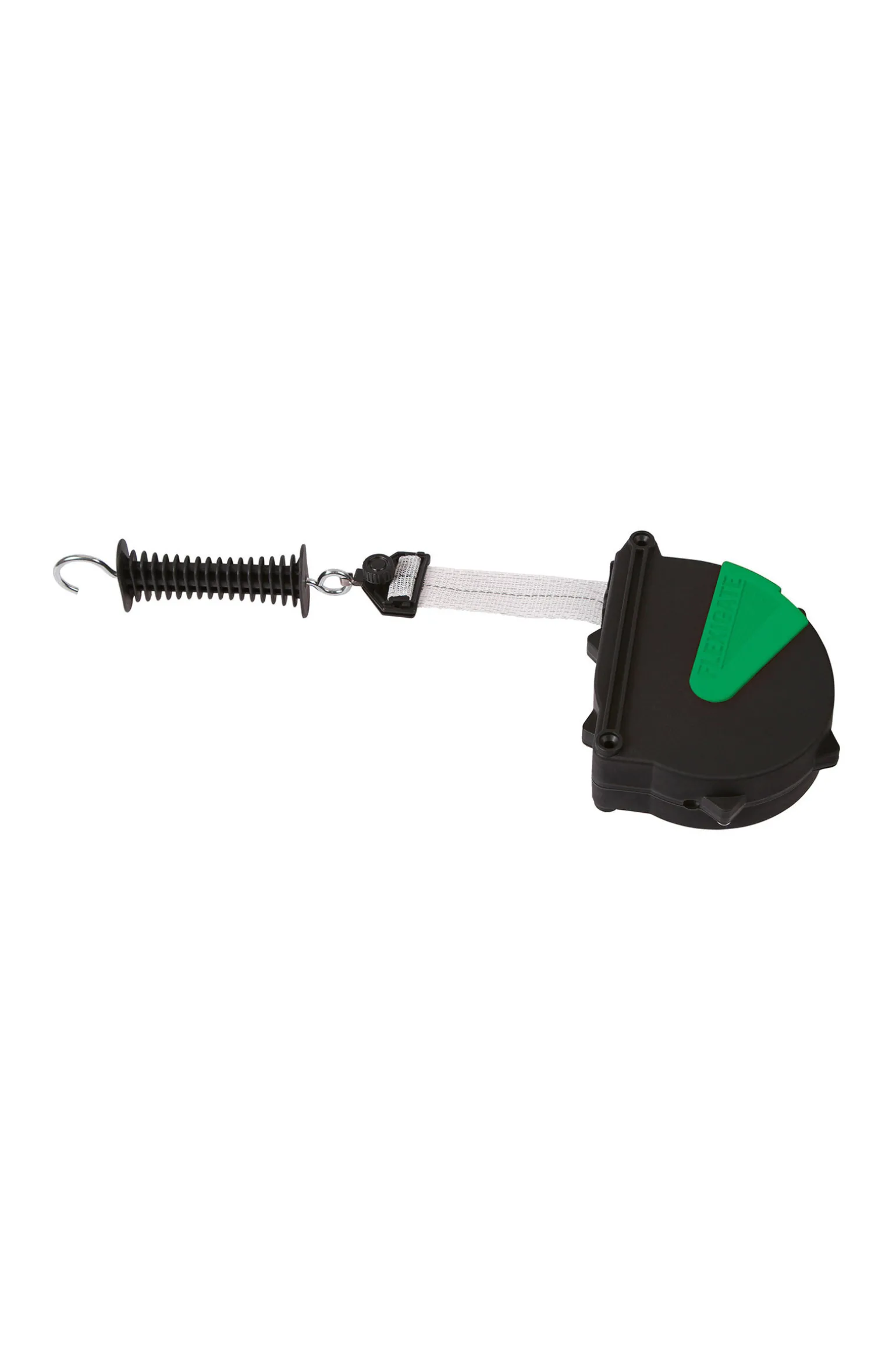Fleksiporten gjør det enkelt for deg å gå inn gjennom strømgjerdet. Båndet eller tauet rulles automatisk opp av en stålfjær.