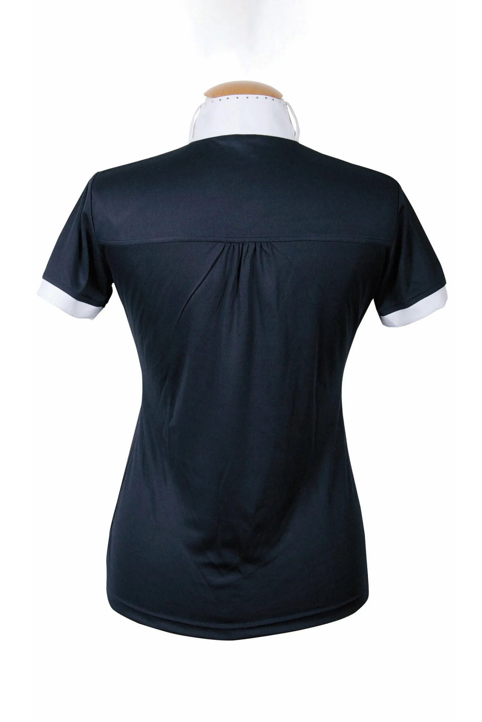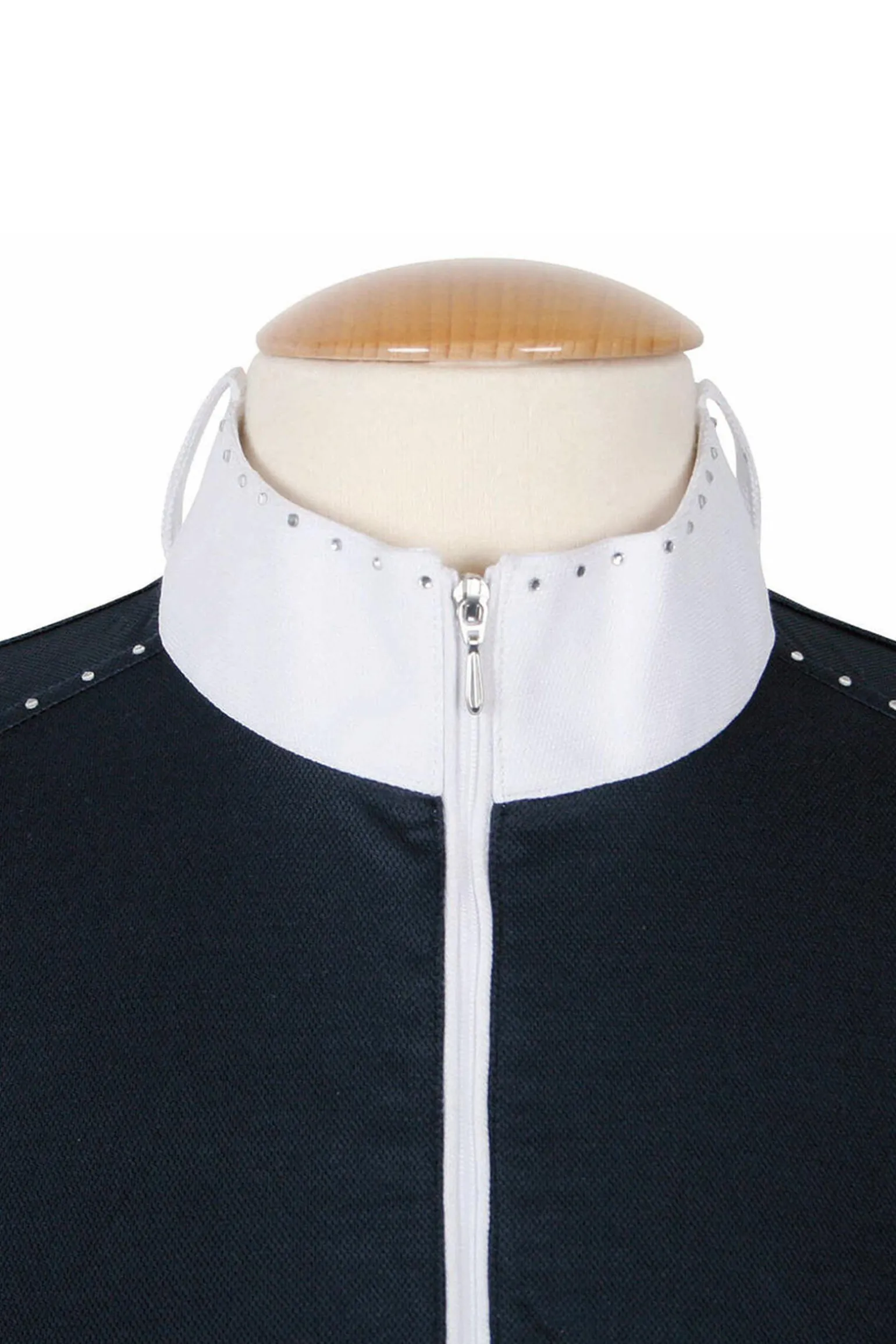Luksuriøs stevneskjorte med strasskrystaller, glidelås og stående krage med slipshemper.
