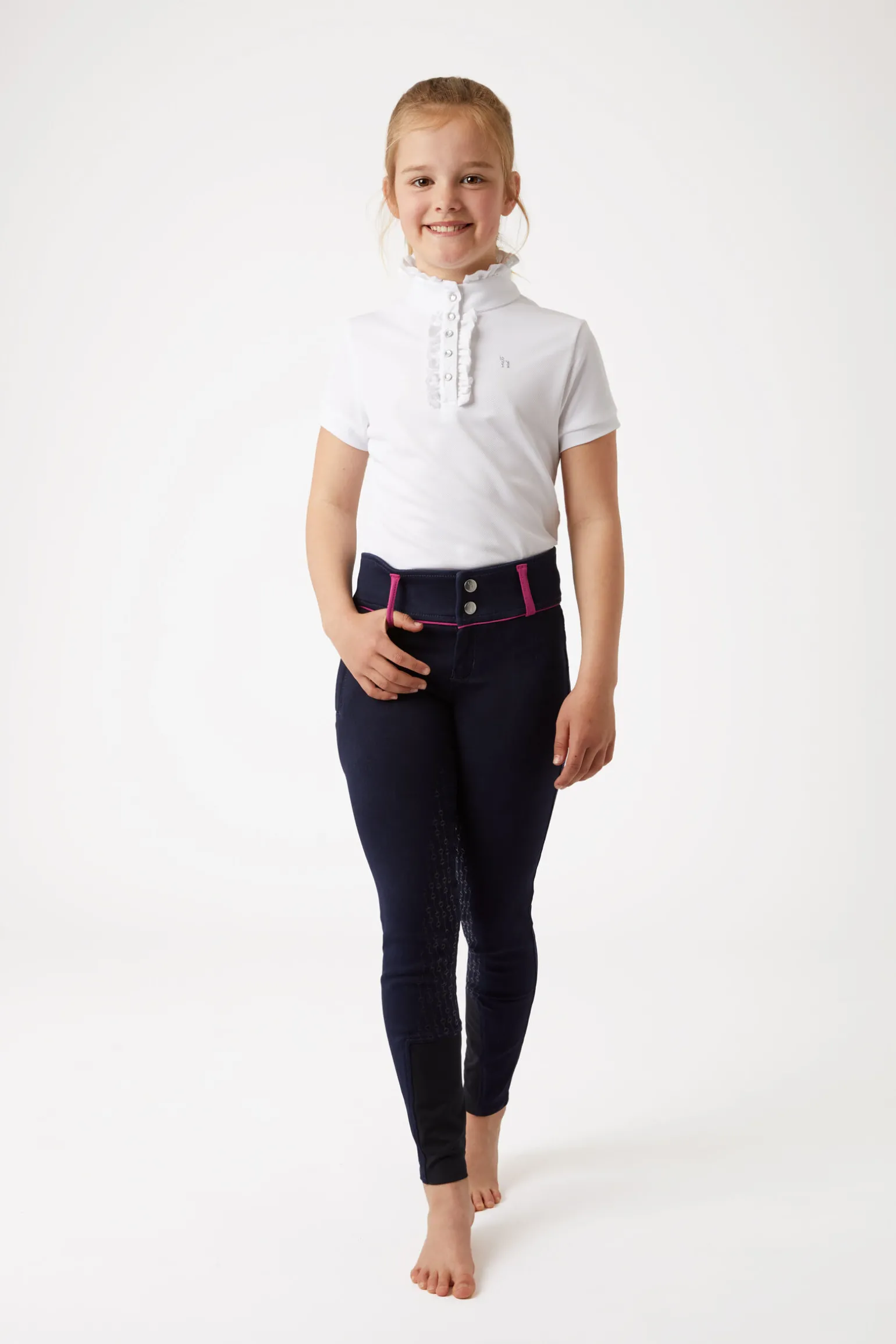 Tradisjonell utforming kombinert med et friskt silikontrykket sete og lår-område gir en moderne oppdatering av din favorittridebukse. Det høye livet på disse tradisjonelle ridebuksene er komfortabelt og støttende, og litt høyere bak. Disse ridebuksene har et stilig repeterende bitt-trykk for et unikt utseende. Klassiske farger som passer bra til trening.
