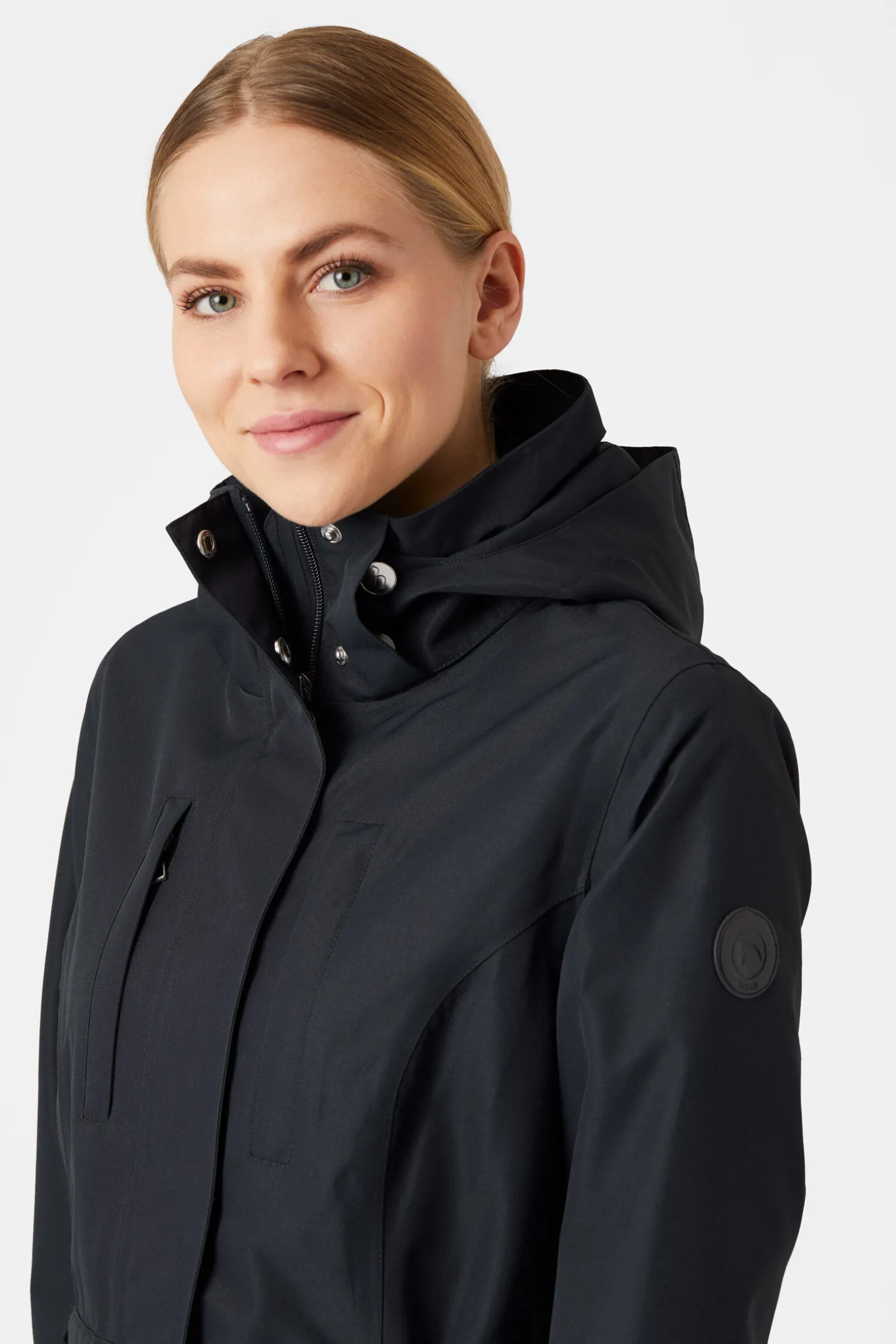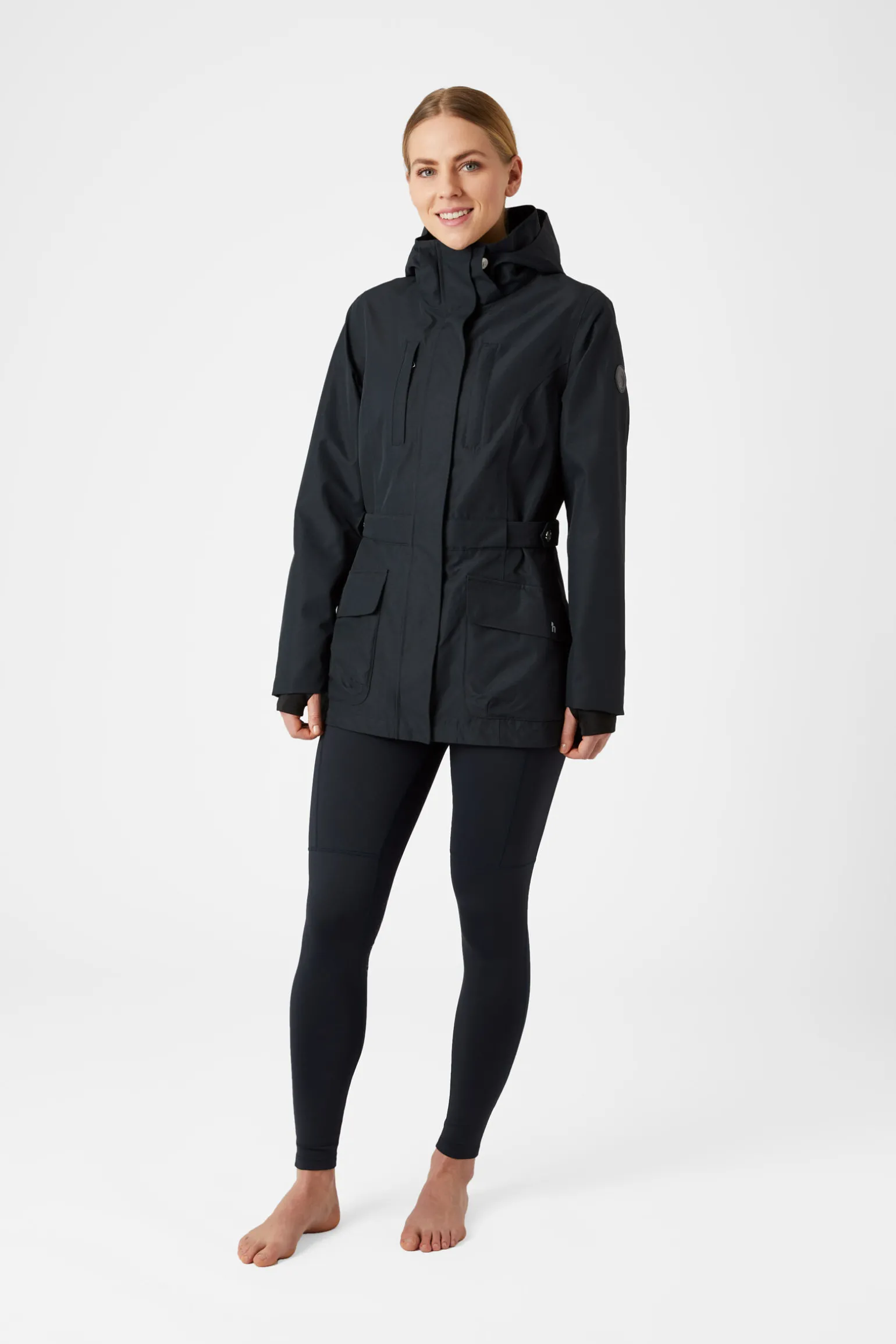 Et stilig design som er innsvingt i livet gir denne damejakken et fint, skreddersydd utseende. Lommene holder alt for deg, fra godbiter til bilnøkler og mobiltelefoner. Horze-emblemet på skulderen og fine detaljer som trykknapper og sterke nylonglidelåser gjør at denne kvalitetsjakken er like holdbar og funksjonell som den er fin. Stoffet er pustende og vanntett, og vil beskytte deg mot det varme sommerregnet. Ryggsplitt vil hjelpe deg med å dekke salen og gir mye bevegelsesfrihet. De sofistikerte fargene matcher med mange plagg i sesongens kolleksjon.