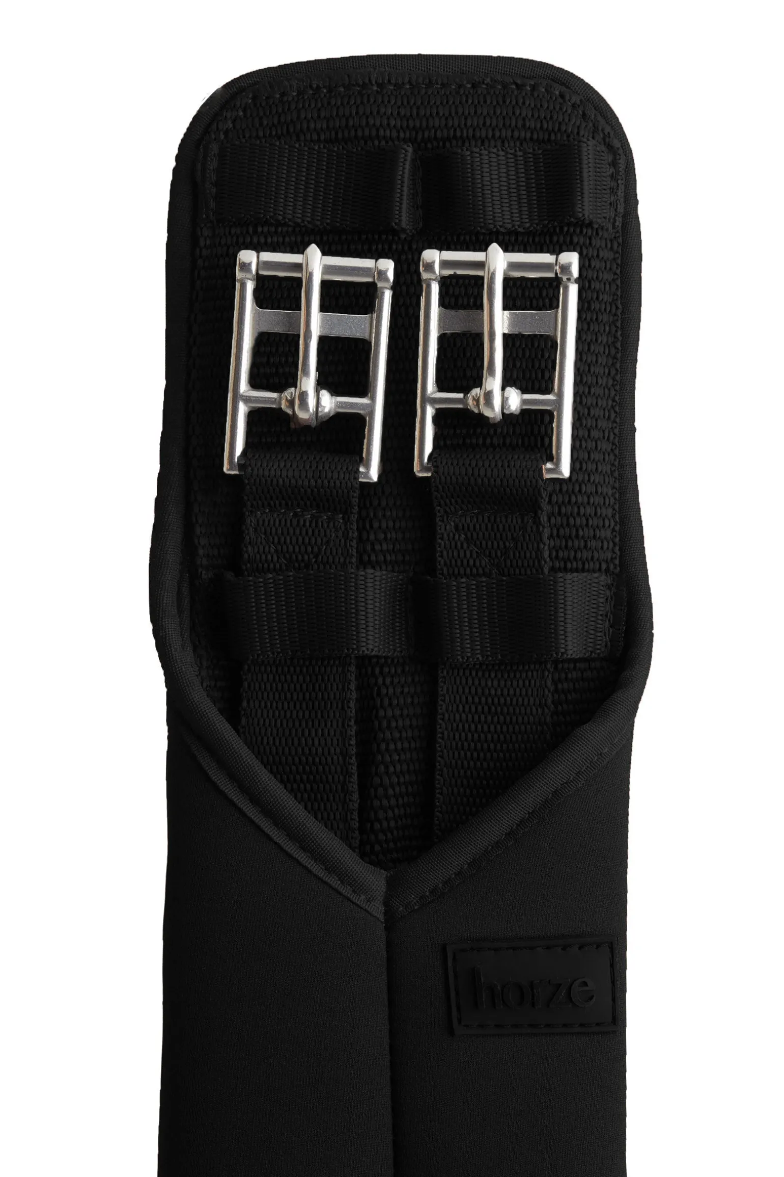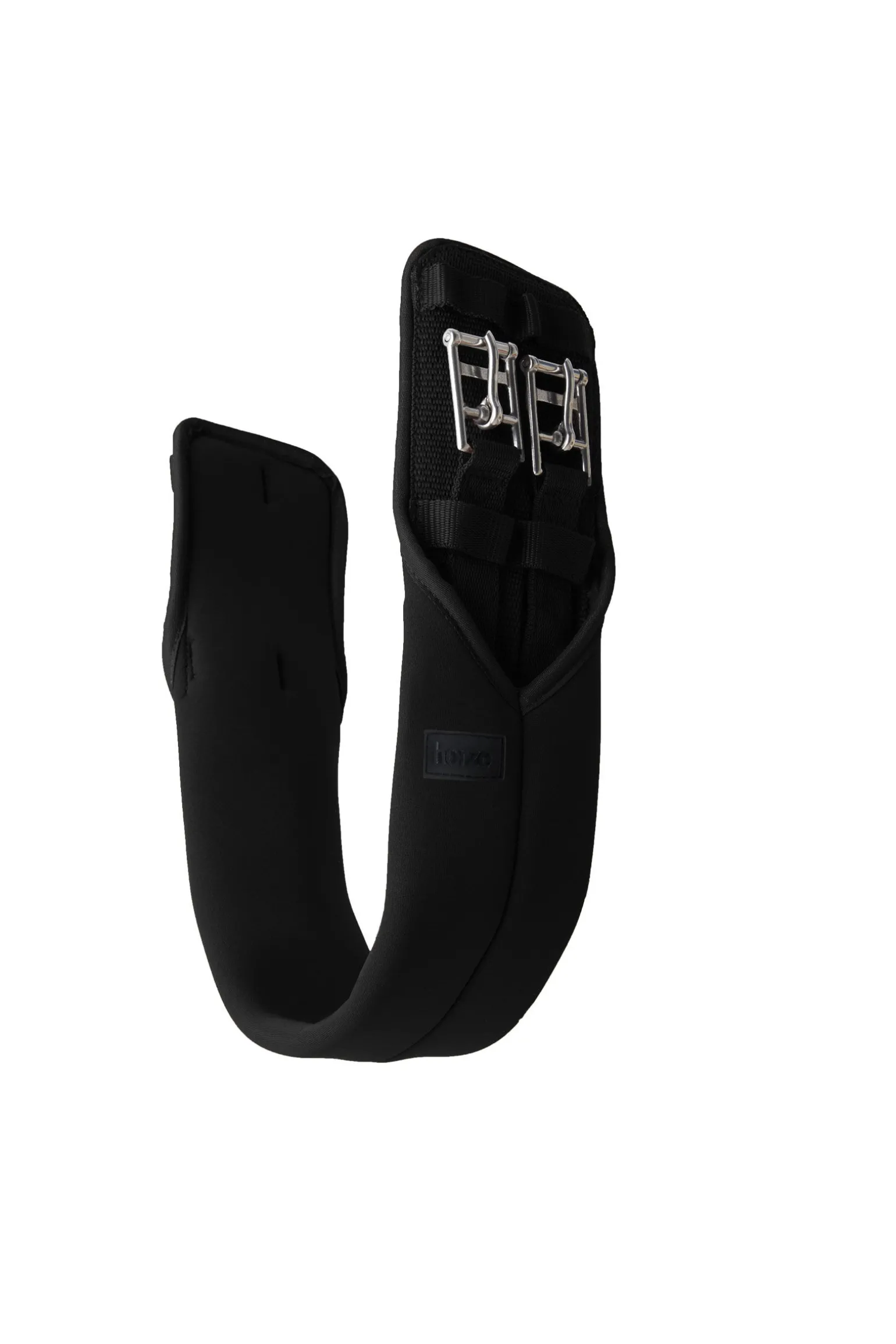 Myk, formet dressurgjord i neopren uten strikk. For mer komfort strekker neoprenen seg forbi rullespennene, og forhindrer derfor gnag og trykkpunkter. Webløkker holder gjordstroppene på plass. Logoskilt i gummi.