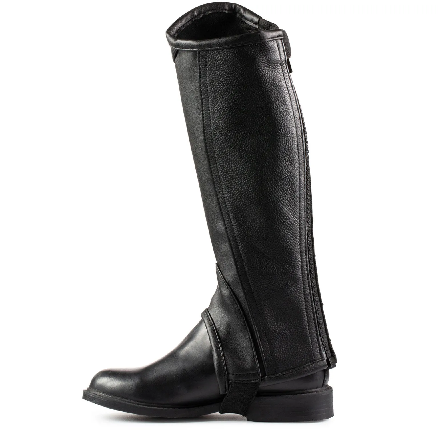 Kombinasjonen av lær og syntetisk materiale gjør disse chapsene til et godt valg for barn. De er holdbare og vil stå imot daglig bruk, er komfortable og vil tilpasse seg bein som vokser. Glidelåsens høye kvalitet vil sørge for at de ikke sklir ned og åpner seg, selv ikke under de mest friske rideturene.