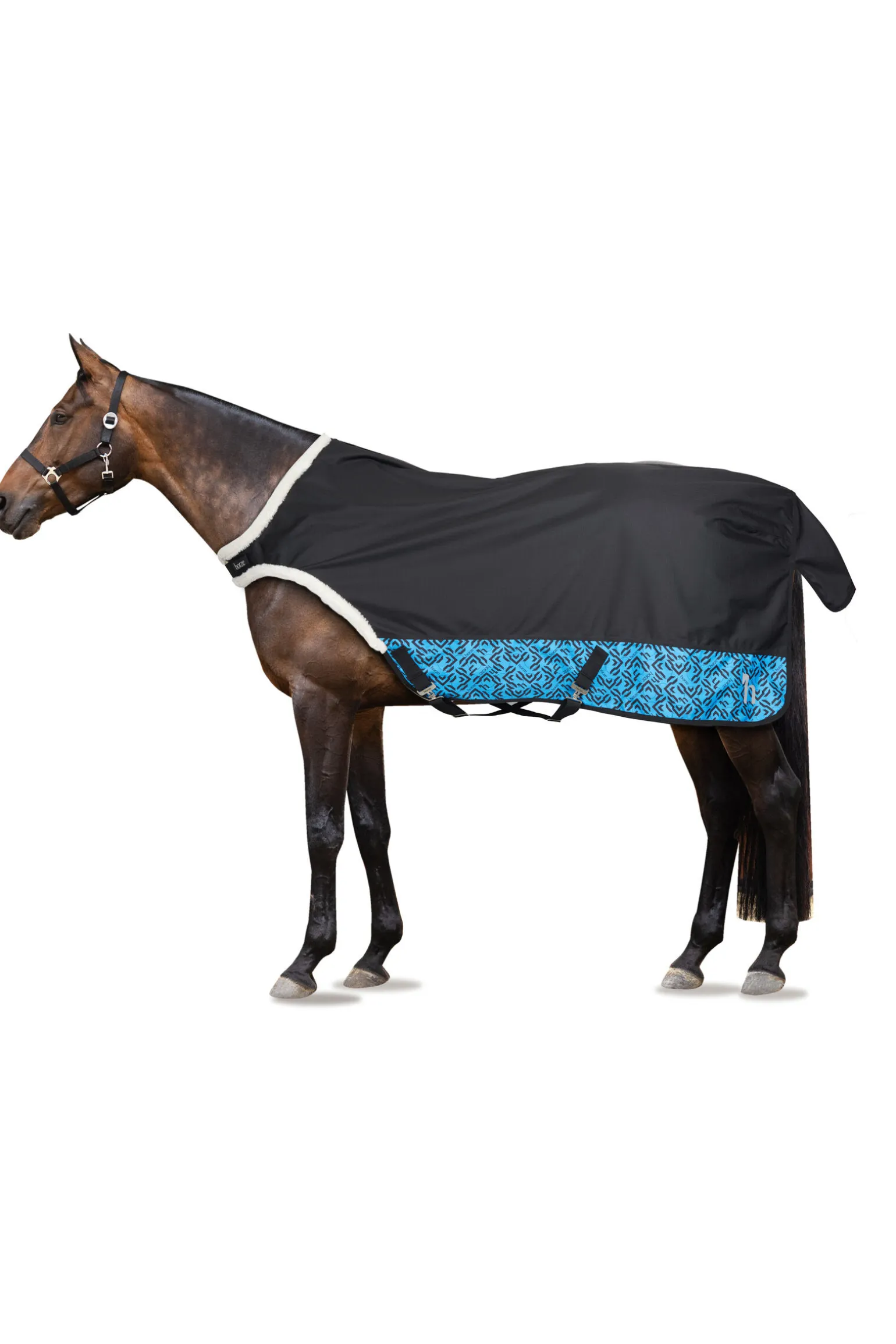 Dekkenet er spesielt designet for komfortabel bruk mens hesten din er i skrittemaskin. Det kommer med en praktisk lukking foran med T-spenne, noe som sikrer en sikker passform. Fuskepelsen ved skuldre og manke forhindrer gnag. Halestroppen med klips og kryssgjorder holder dekkenet trygt på plass. For ekstra fôring kan du bruke dette dekkenet med den matchende lineren på 150 gram (#24428). Gjør settet komplett med den matchende halsen (#24189) for en helhetlig beskyttelse.