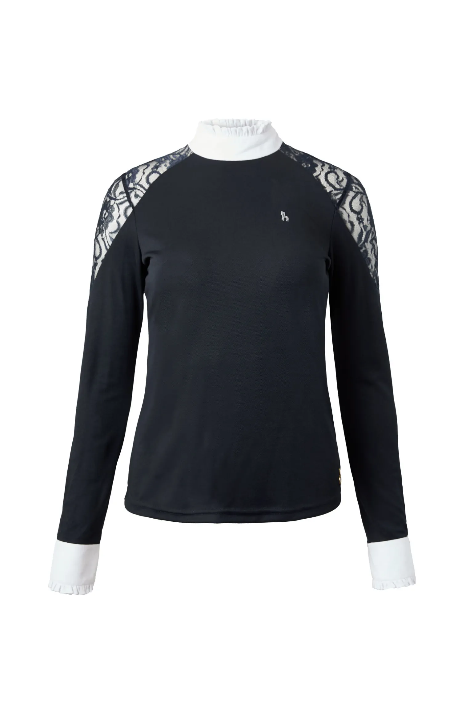 Horze Sylvie langermet stevneskjorte er laget med nydelige blondedetaljer og krystallogo på brystet.Denne vil gjøre at du skiller deg ut fra alle andre, samtidig som du ser superstilig ut!Pustende stoff gir deg perfekt ventilasjon, mens de hurtigtørkende materialene trekker vekk fukt.