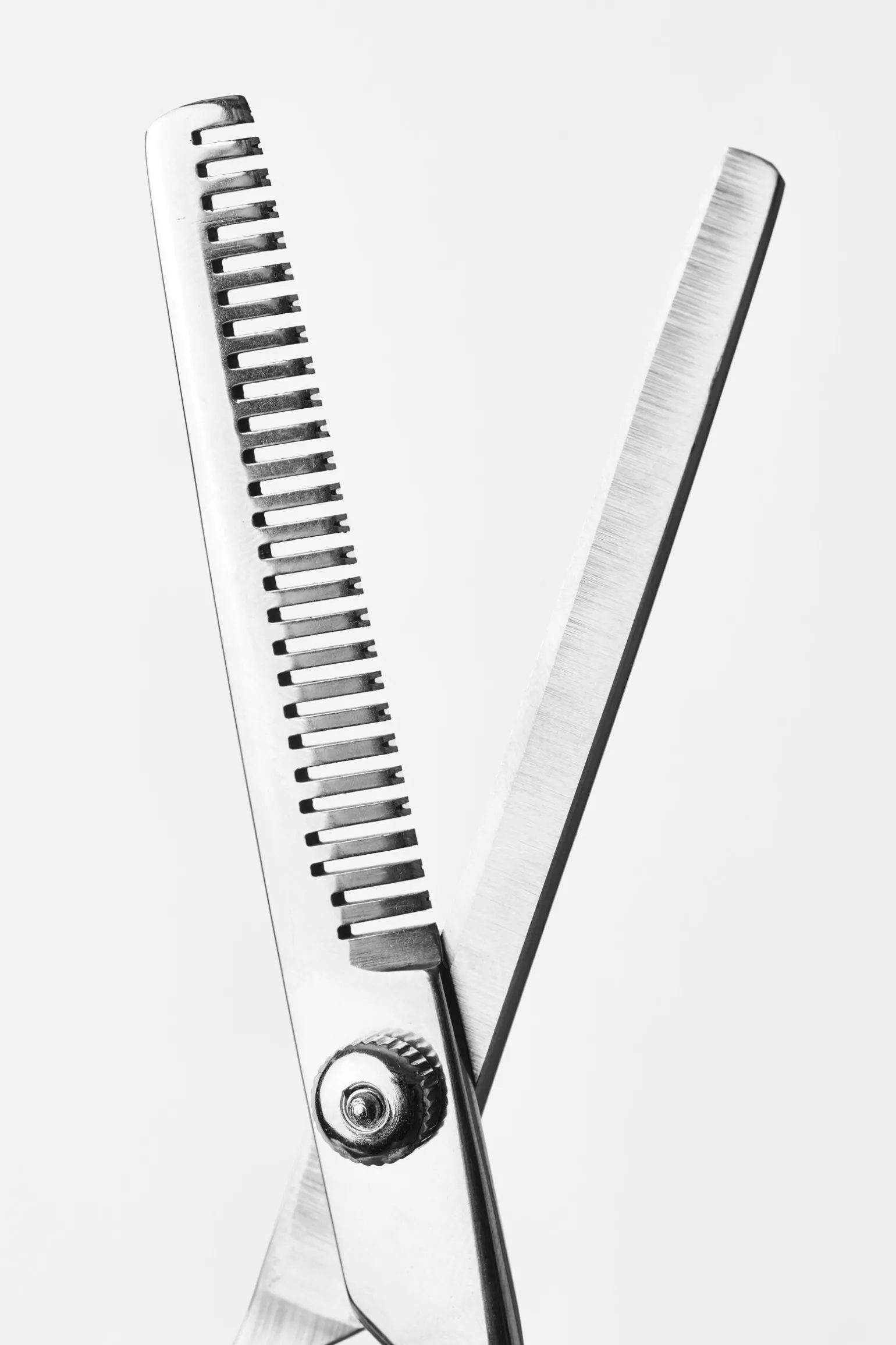 Saks i rustfritt stål. Tynnesaks er utmerket til behandling av en tykk man.
