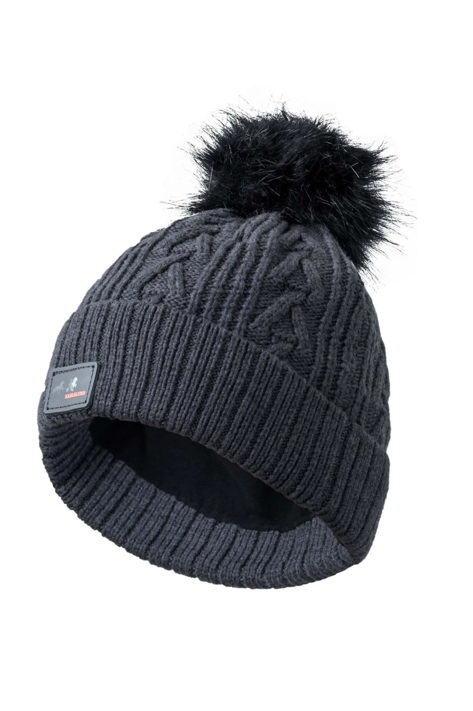 Nydelig strikket lue i merinoull, med fleecefôr og dusk i fuskepels.Den har en nydelig, myk komfort og holder deg varm og behagelig.