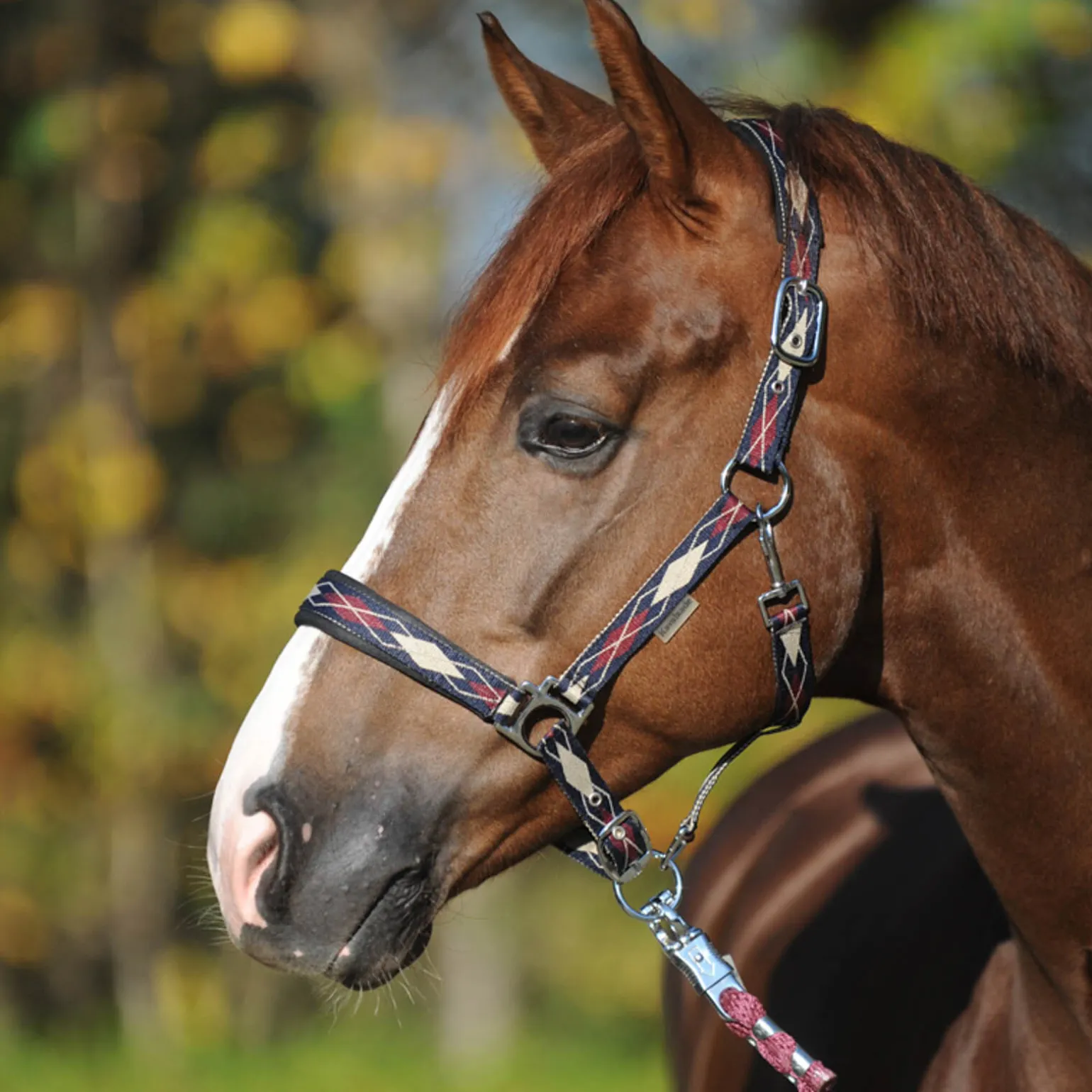 Grimen «Classic Raute» kommer med et moderne sjakkmønster og er et supert blikkfang på alle hester.Nakken og nesen er mykt polstret.Grimen kan justeres på begge sider, og under for en perfekt passform.Spennene er i sølv.