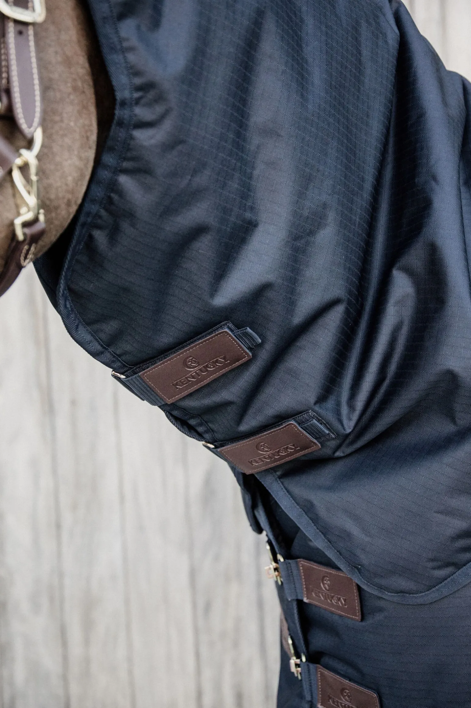 Outdoor hals kan brukes i kombinasjon med Kentucky utedekken.Den kommer med to ulike fyll, 0 gram og 150 gram – slik at du kan tilpasse det behovene til din hest.Utsiden er laget av 600D ripstop-stoff, noe som gjør det motstandsdyktig mot varierende vær.Halsen har kant av nylon med en 210T PES-innside som gir en myk følelse.Den kan festes til dekkenet med fire sterke borrelåser.Den kommer også med to sterke borrelåsfester.