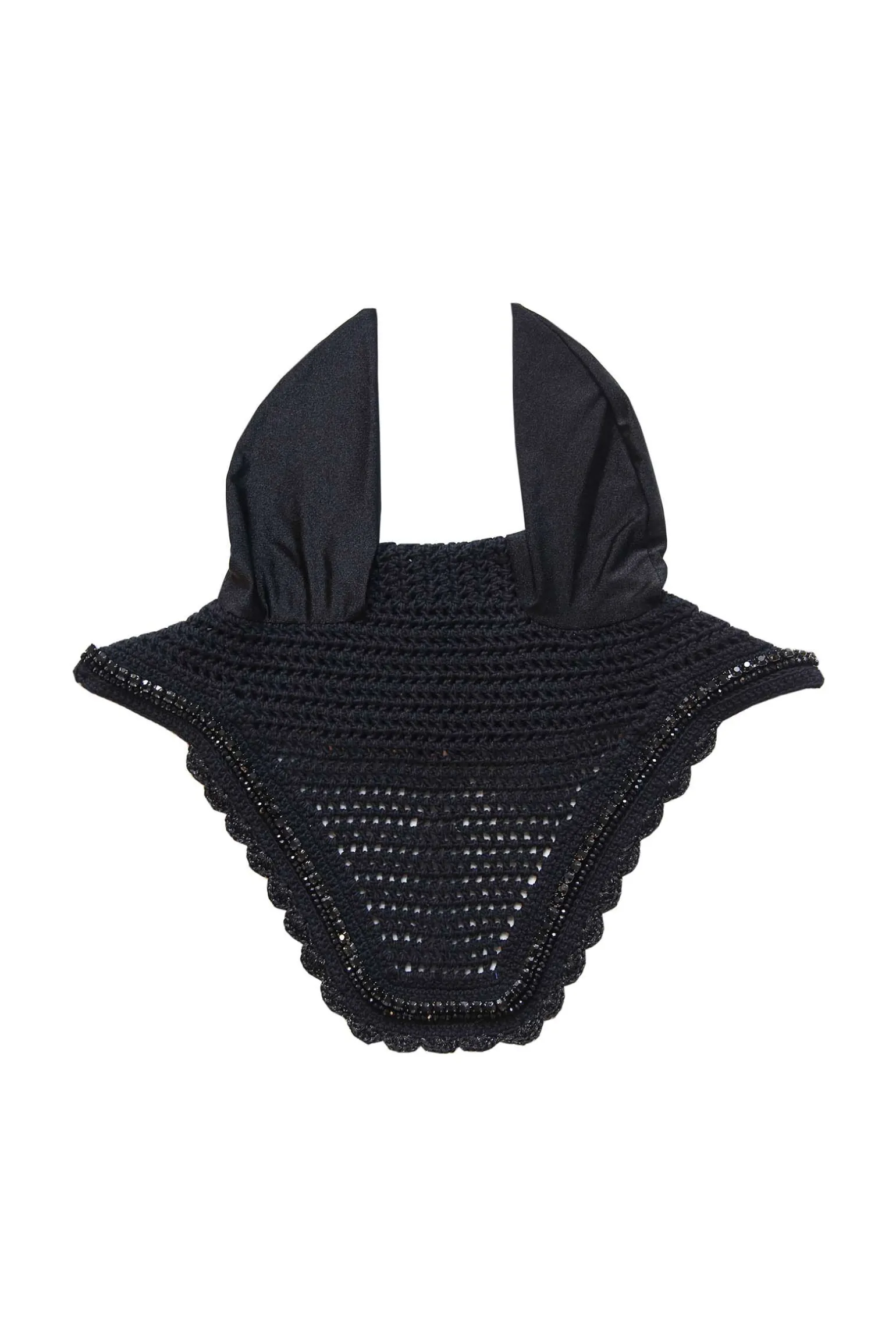 Alongside our other popular Fly Veils we developed this new model. The Wellington shape is a combination of the modern American look and Kentucky Horsewear窶冱 expertise. This fly veil is topped off with stones and pearls in the same colour as the fly veil! The outer band sparkles. The Fly Veil Wellington Stone & Pearl is a great match with our Saddle Pad Pearls. This outfit is real head-turner!The Fly Veil also protects the horse窶冱 ears against flies while riding. The Fly Veil is entirely hand made for better durability. The material around the ears is stretch and slim fit. The soundproof ears are slightly thinner than the ones of other brands, which offers a perfect fit and don窶冲 slide off. They remain equally soundproof. Therefore the horse doesn窶冲 get distracted by noise.The neck part is longer so it can窶冲 slip and has a sparkly touch so the rider can enjoy this fancy fly veil while riding. The Fly Veil does not have a visible logo, therefore rider or sponsors can embroider their own logo.