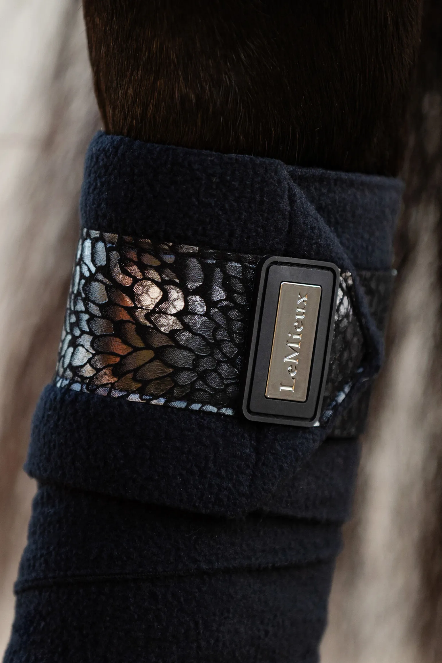 - Metallisk endedetaljflik med matchende metallisk trykk og merke Kan brukes alene eller med LeMieux under-bandasjeputer for ekstra beskyttelse