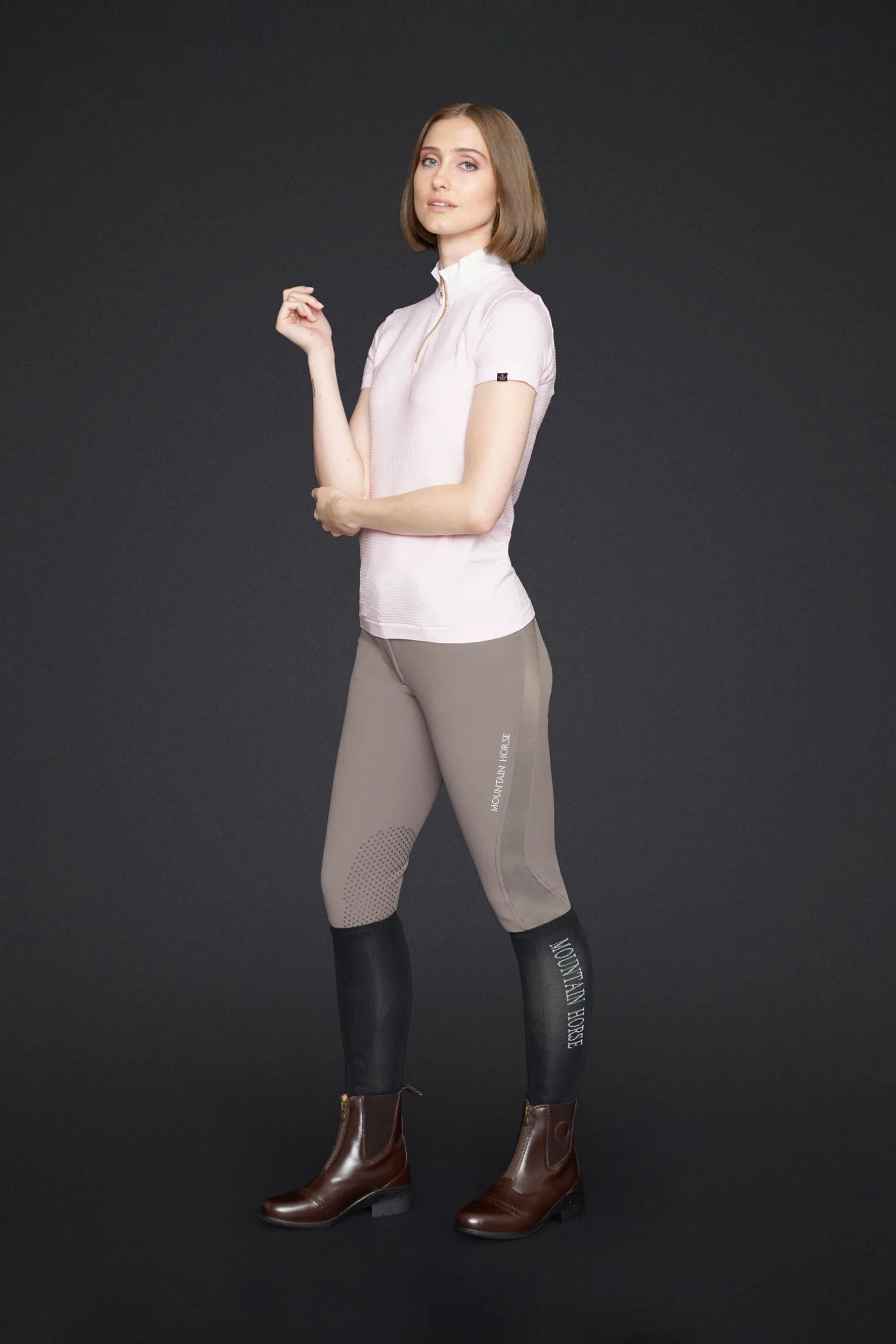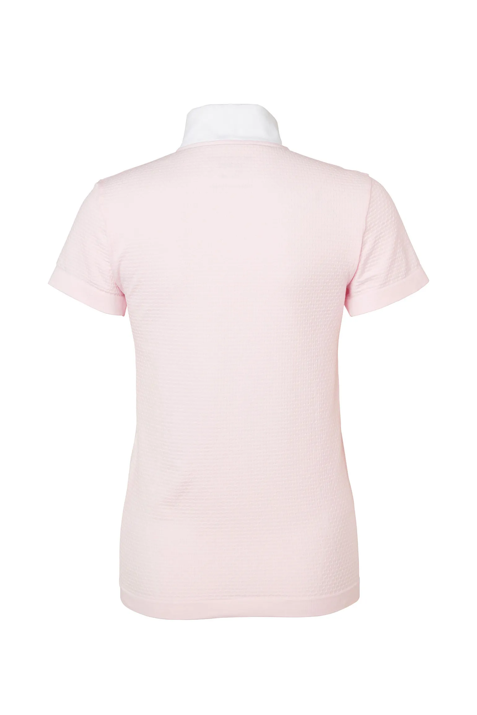 Feminin, sømløs, teknisk stevnetopp med en hvit krage som passer for stevne.
