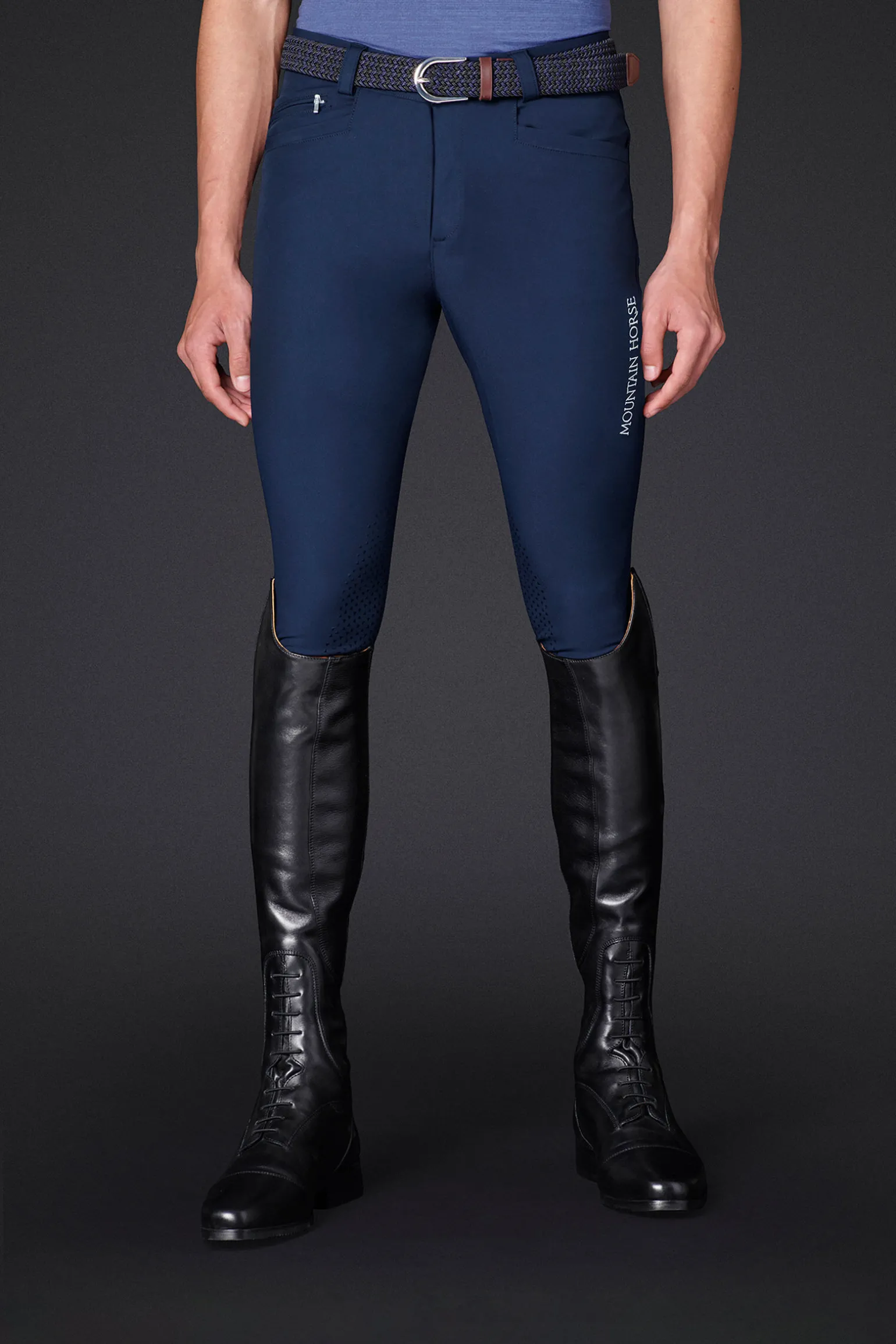 Men’s breeches made in durable technical fabric for a great performance. Silicone grip at knee. Royal performance collection.