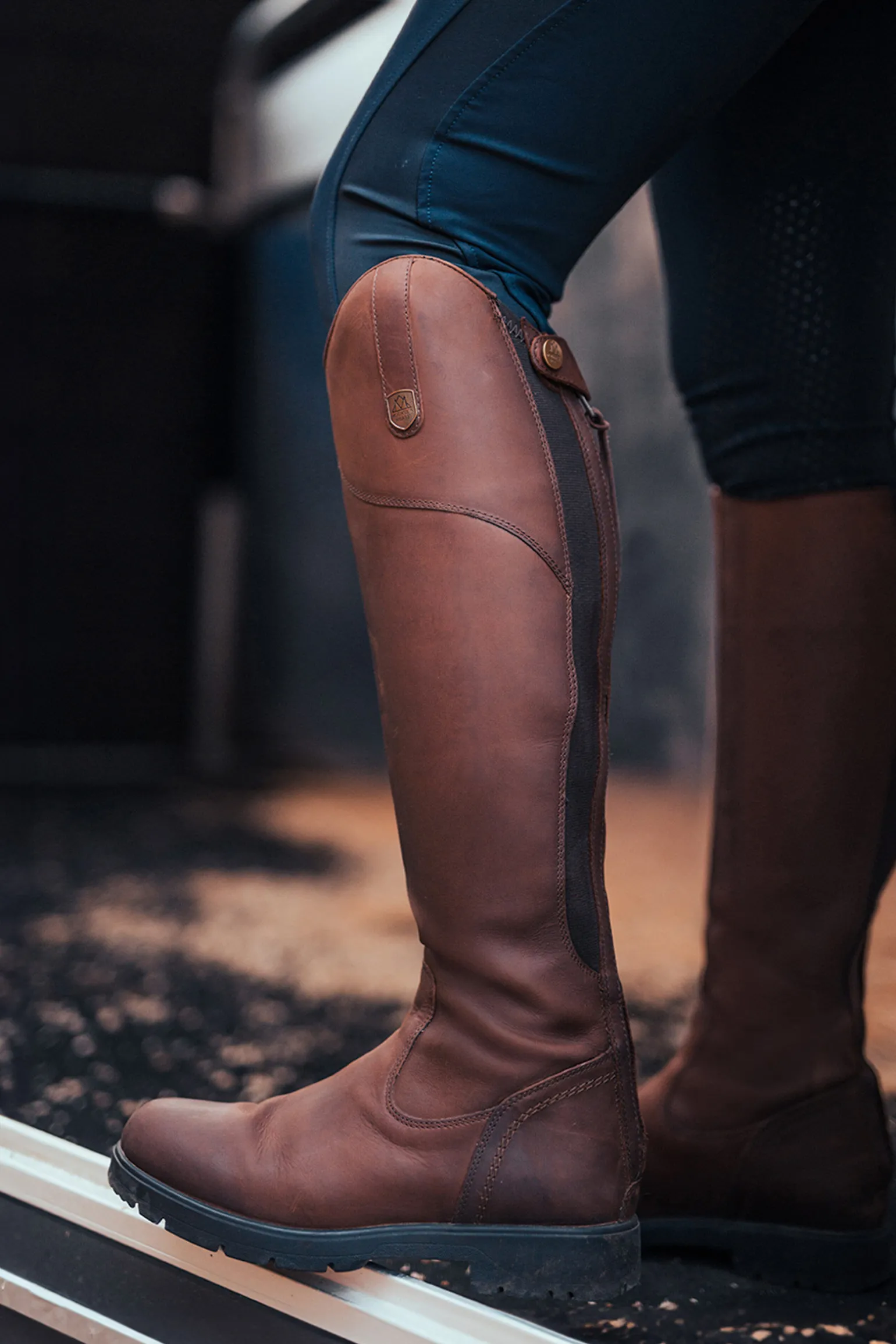 Denne nydelige ridestøvelen er laget i fullnarvet lær.Fot-delen er vanntett slik at dine føtter holdes tørre i dårlig vær.Den innebygde forsterkingen i skaftet øker stabiliteten til støvelen, mens en skjult stretch-sone gir en perfekt passform og gjør den komfortabel å bruke.Midtsålen i PU er støtabsorberende.