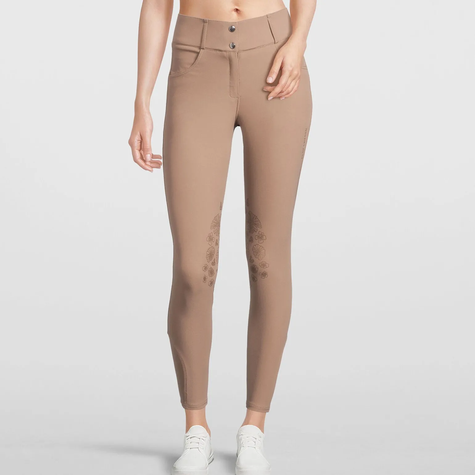 Skreddersydd, superkomfortable ridebukser med knegrip, laget i et eksklusivt, fireveis stretchmateriale.Ridebuksene har et høyt liv og gir en flatterende passform.Knegripet er designet med et nydelig blomstertrykk i silikon, og en ensfarget PS-logo er trykket på låret og bak.Nøye utviklede detaljer, slik som ankelpartiet i mesh for ekstra støtte og pusteegenskaper, samt de uekte baklommene dekorert med elegant logo.