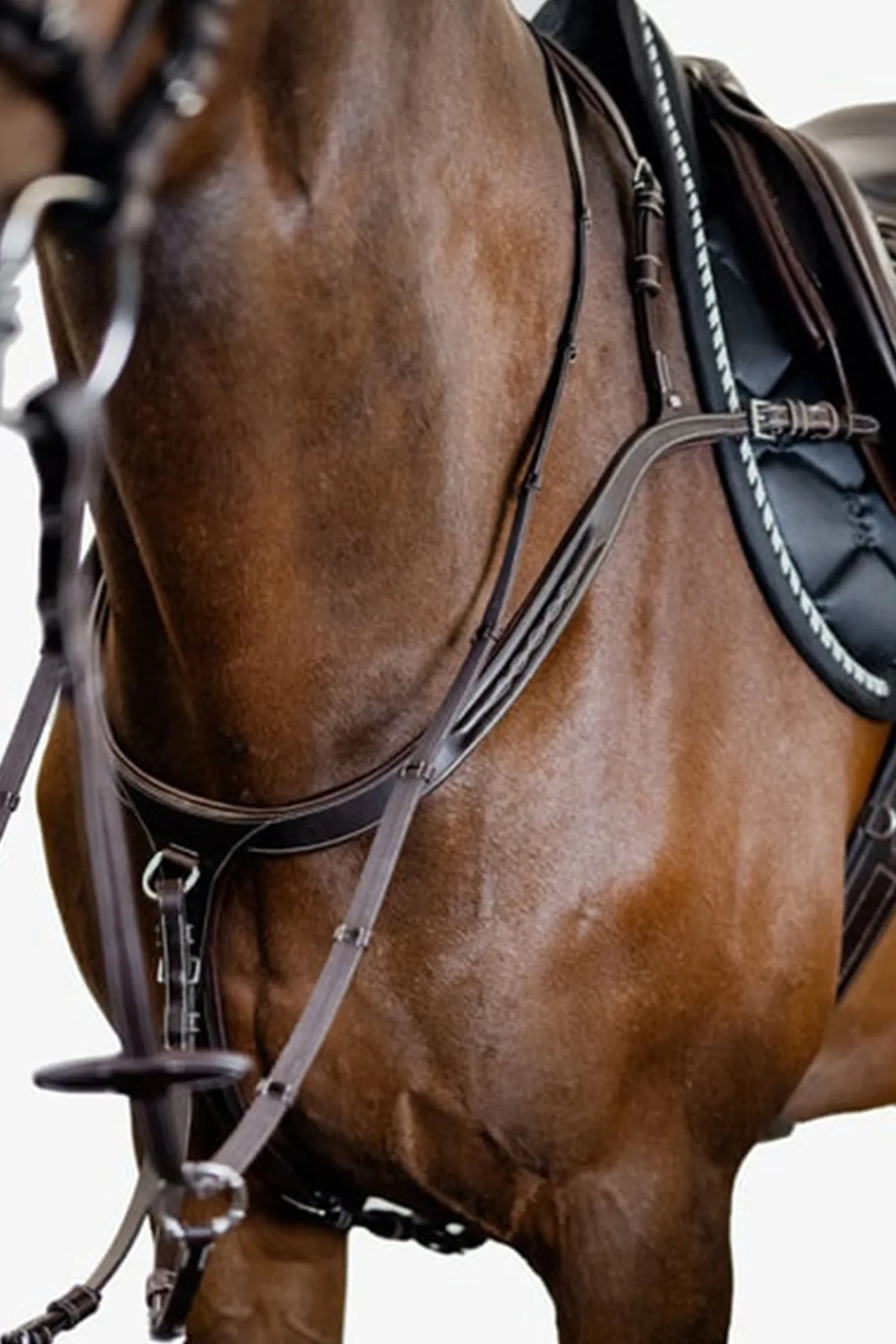 Et luksuriøst og godt utformet fortøy, ekstra bredt og polstret for ekstra komfort. Det har en anatomisk formet kurve som beveger seg rundt hestens skulder uten å begrense bevegeligheten. En praktisk karabinkrok festes til gjorden, og fortøyet er justerbart på begge sider av manken. De smarte Snap It krokene gjør det unødvendig å åpne tøylene for å feste utstyret, noe som er både praktisk og sikkert.