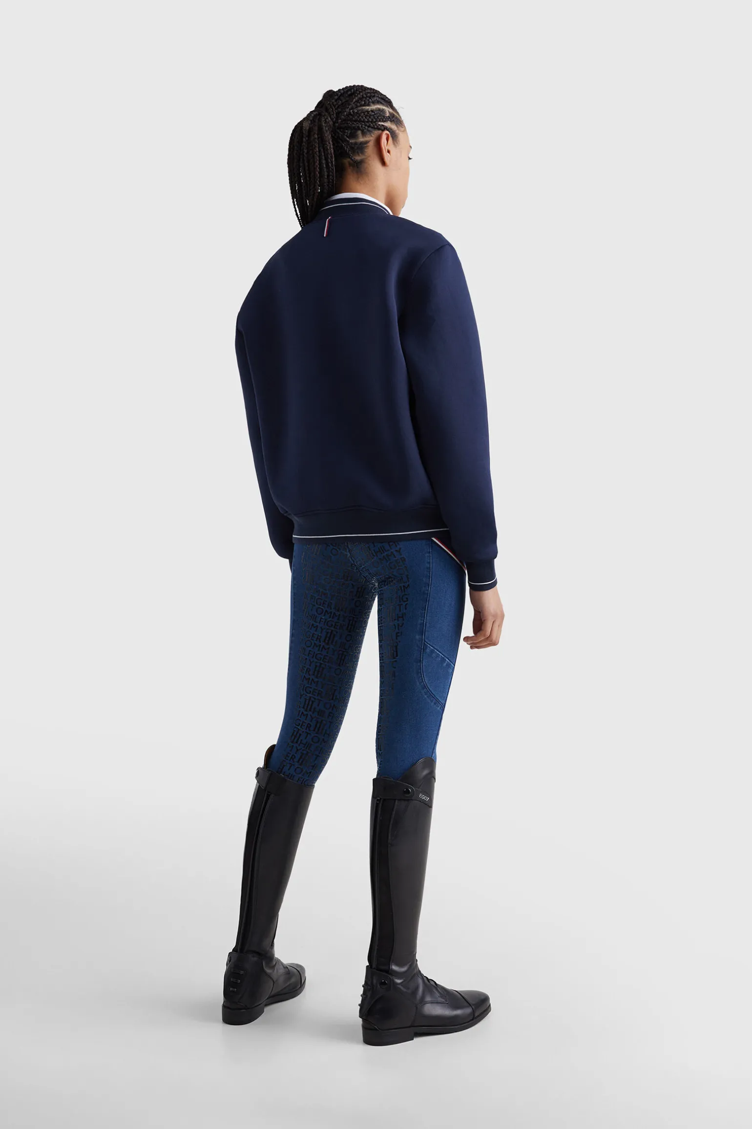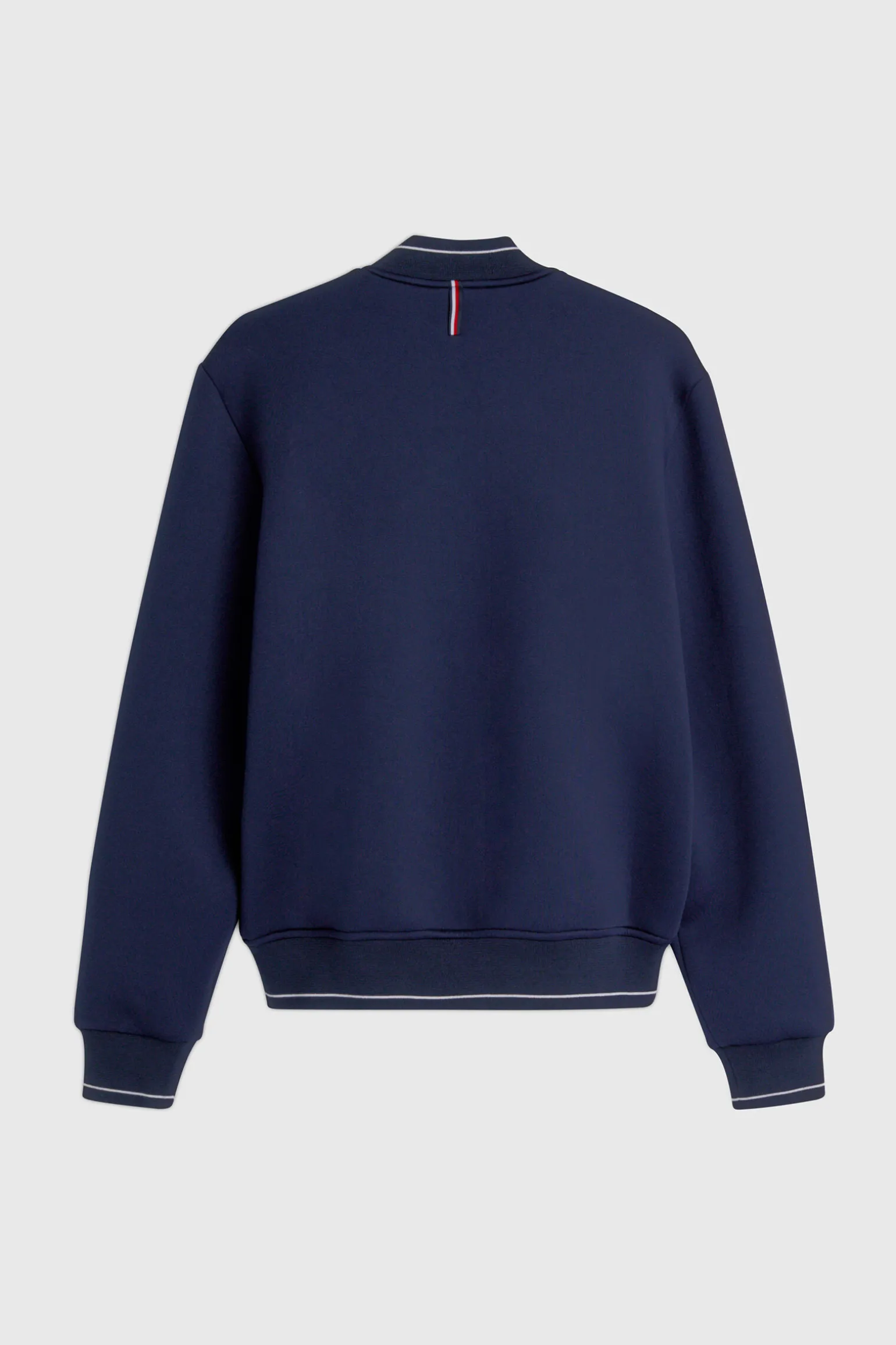 Glidelås-bomberjakke med ribbekant på fald, mansjetter og krage.Har sidelommer med trykknapplukking, Crest-broderi på venstre bryst og flagglogobroderi på høyre mansjett.