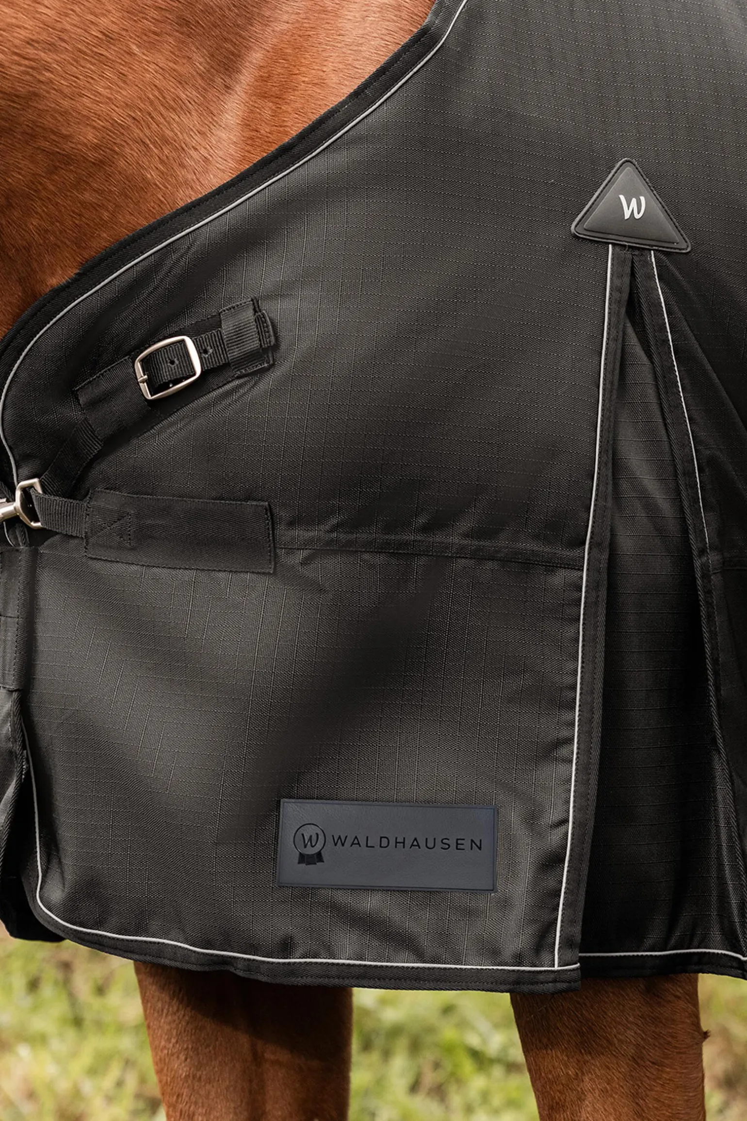 - Ekstra stor haleklaff med reflekterende Waldhausen-bokstaver