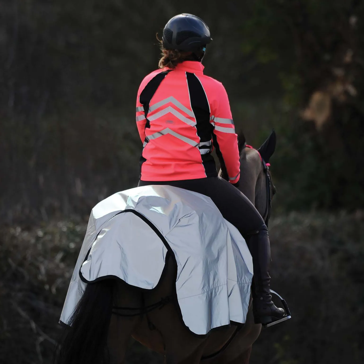 - Vanntett og pustende ridedekken med 210T polyesterfôr og et heldekkende, reflekterende materiale