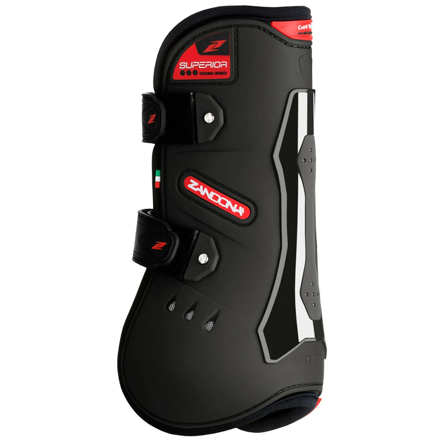 Produsert i Italia. «SUPERIOR senebelegg med borrelås» er utviklet for å beskytte spranghester fra kollisjoner og blåmerker på forbeinets kode og deler av pipen. Samtidig som de er med å støtte senene. De er laget med en utsidig TPU struktur med differensiert tykkelse, perforert neopren som er ventilert med 6 luftekanaler over koden. Mellom TPU strukturen på utsiden og neoprenen på innsiden finnes det Gel-Tech der det er nødvendig. Den virker støtdempende og gir komfortabel polstring. På innsiden finnes det en flex-sone som er nødvendig for å gi maksimal bevegelsesfrihet for beinet. Borrelåsen gir en sikker lukning, og har et avtagbart system som kan åpnes raskt og byttes ut når det er slitt eller ødelagt. Dimensjonen og den ergonomiske formen er utviklet etter en nøyaktig kopi av beinstrukturen, noe som garanterer en perfekt plassering på beinet.